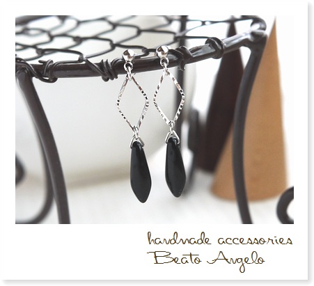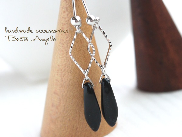 ◆+angelo+チェコダガーとダイヤのピアス(p-130)ジェット S シンプル ブラック 黒 ポストピアス