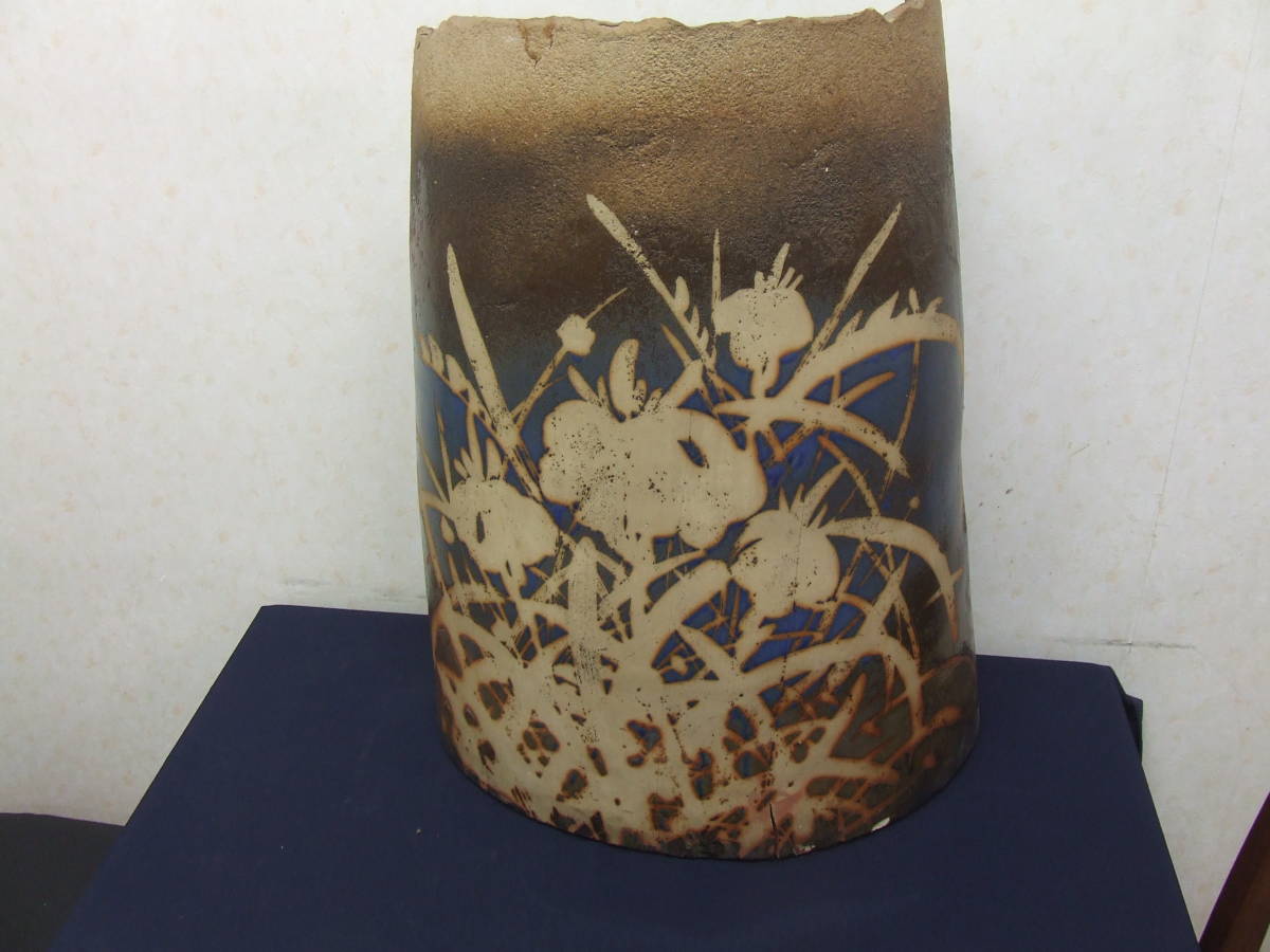 陶芸品 あやめ◇陶板のついたて◇手工芸作家物◇大物
