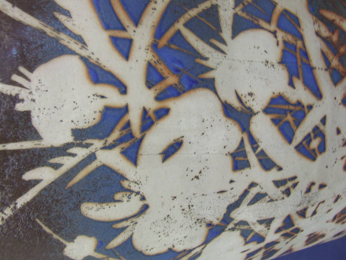 手作りの作家物と聞いておりますが、作家さんのお名前が分かりません。陶芸は詳しくありませんので断定できませんが、信楽の焼き物と思います。図柄はアヤメの様に見えますが、画像1でご判断ください。