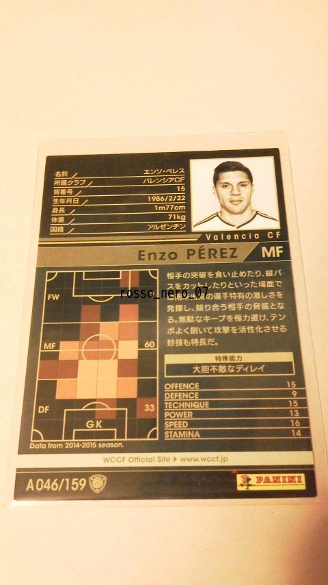 ☆WCCF2015-2016☆15-16Ver.2.0☆A046☆白☆エンソ・ペレス☆バレンシアCF☆Enzo Perez☆Valencia FC☆