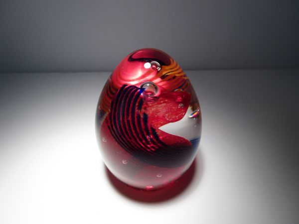 ケイスネスの作品の中でも大き目の品物でペーパーウエイトというよりオブジェのような1品。色合い、デザインともに手の込んだしつらえを施された完成度の高い作品です。単体で飾っておくだけでも楽しめる存在感のある品物で 出回る機会の少なめの限定品なのでお好きな方はぜひご検討ください。