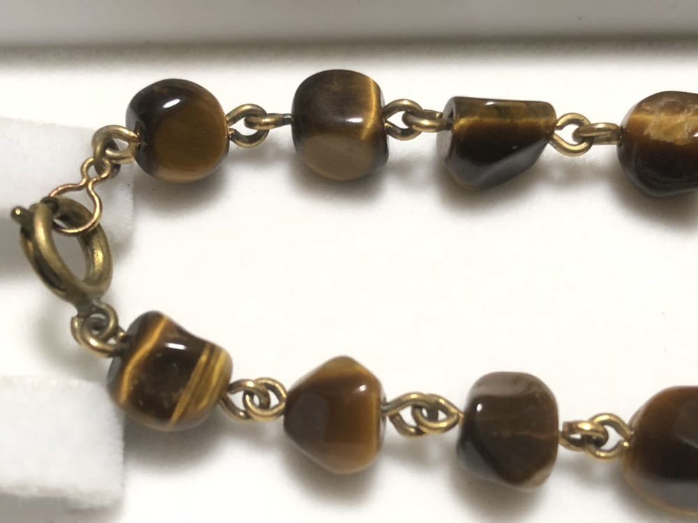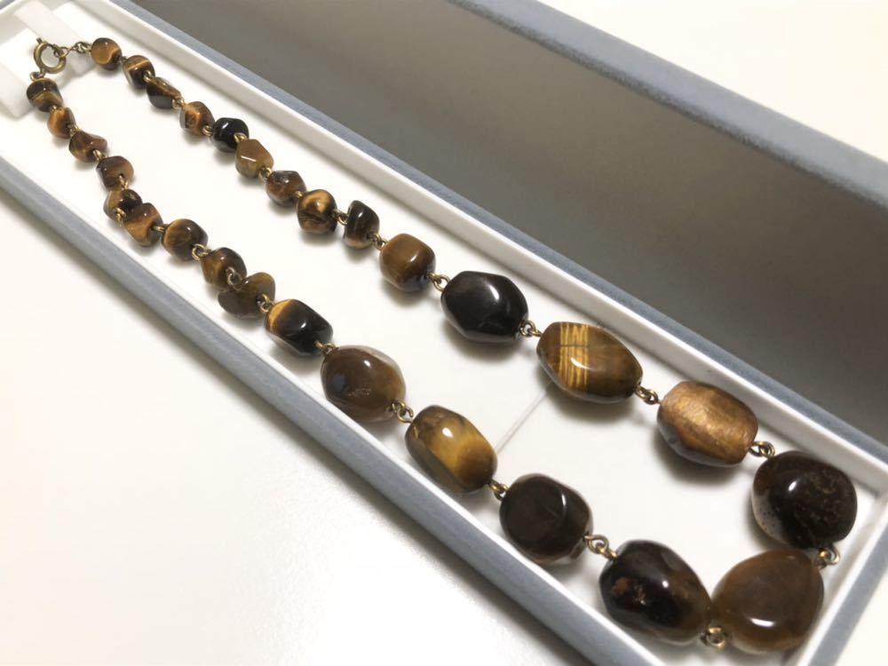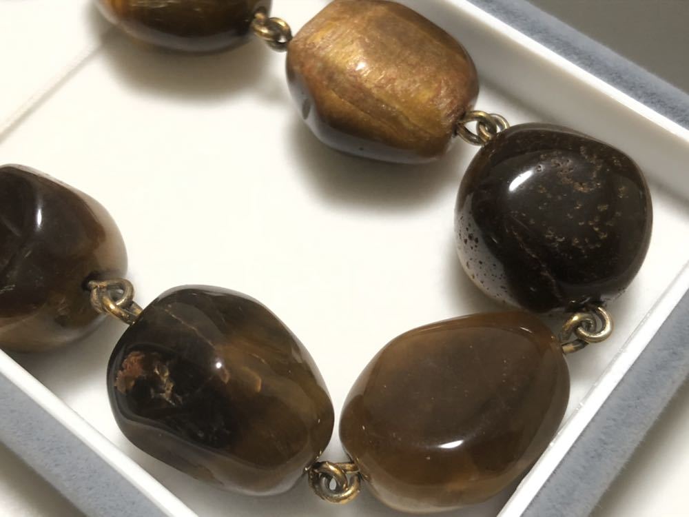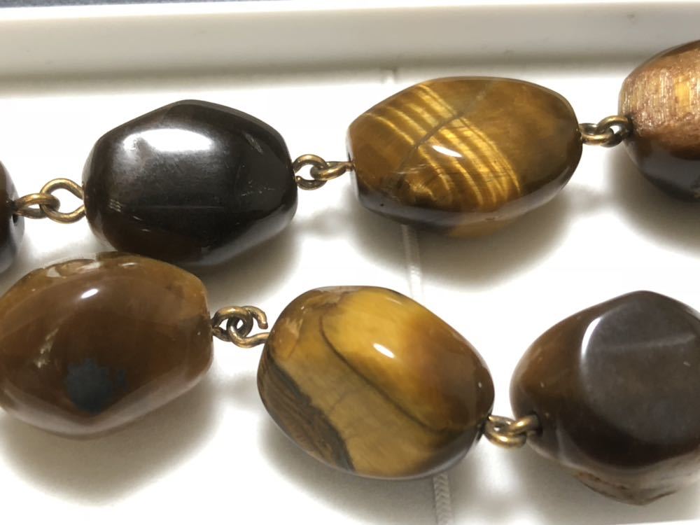タイガーアイを使用した、ラフカットのデザインネックレスです。金属面に若干の変色があります。
