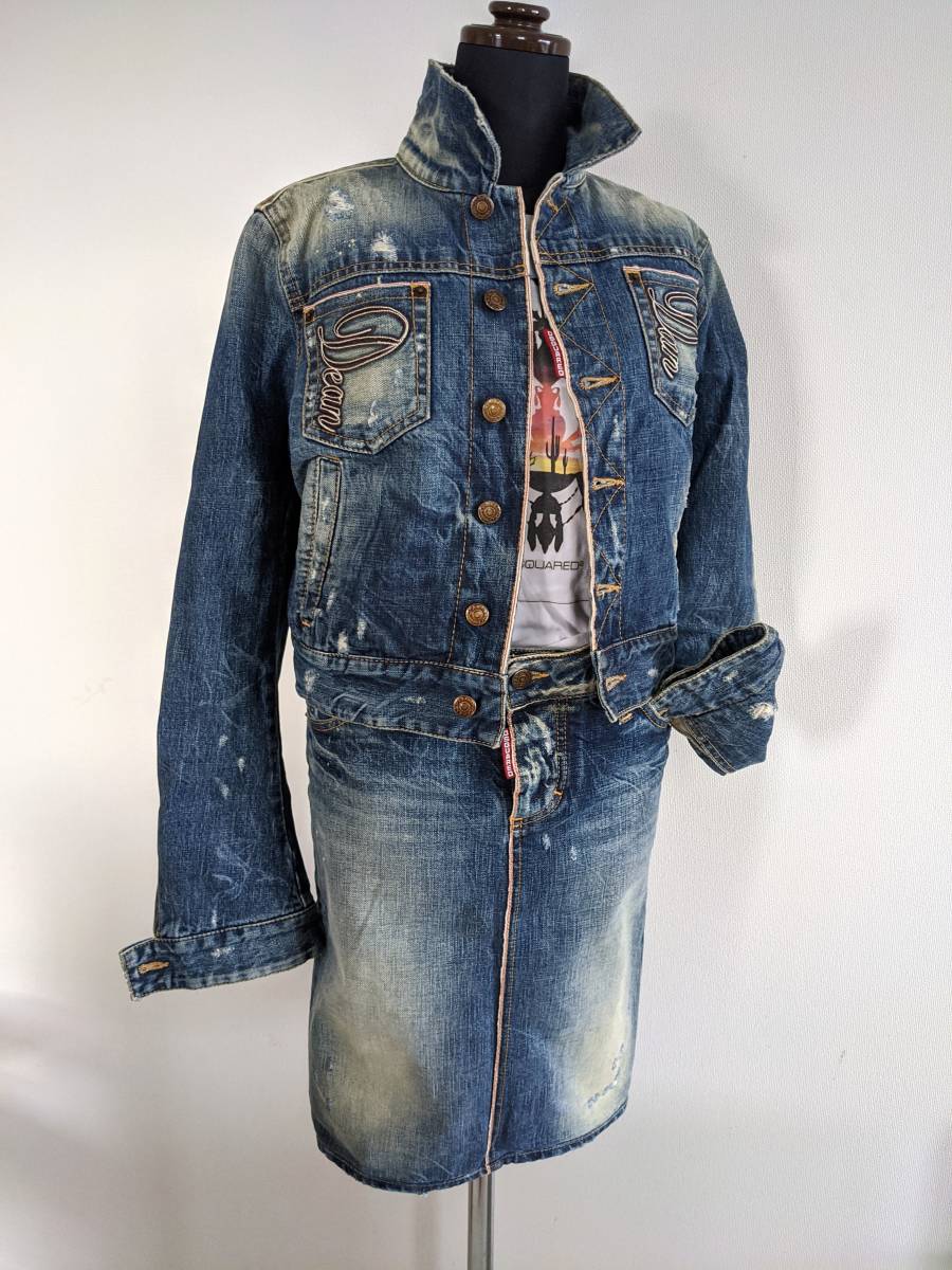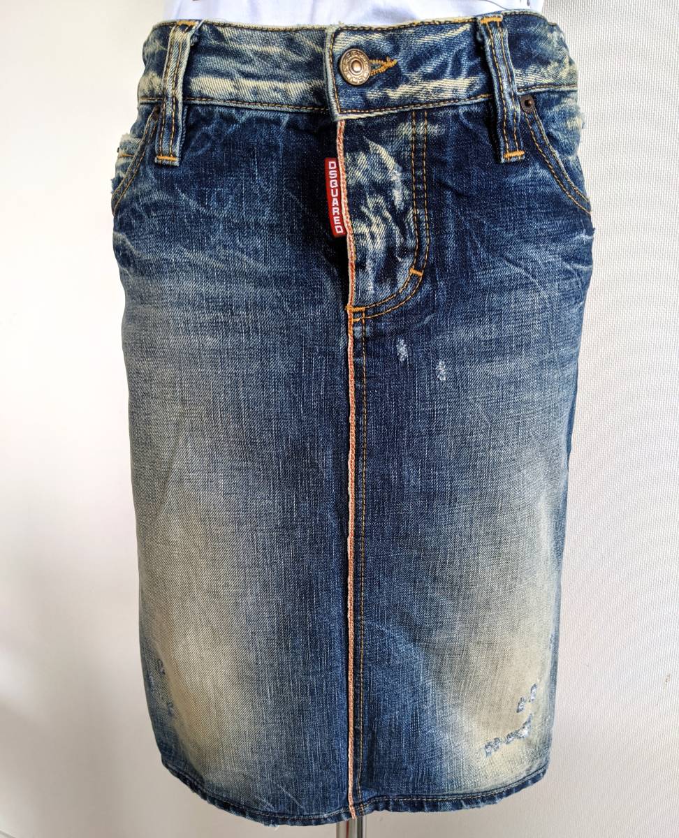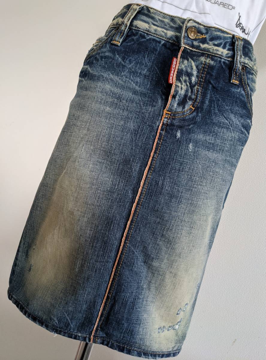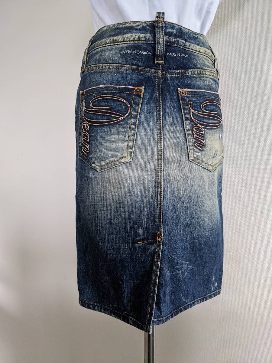 名作デニム/幻/DSQUARED/ディースクエアード/DSQUARED2/デニムスカート/サイズ36/稀少/デザイナーDEAN&DANロゴ革パッチヒップポケット/レア