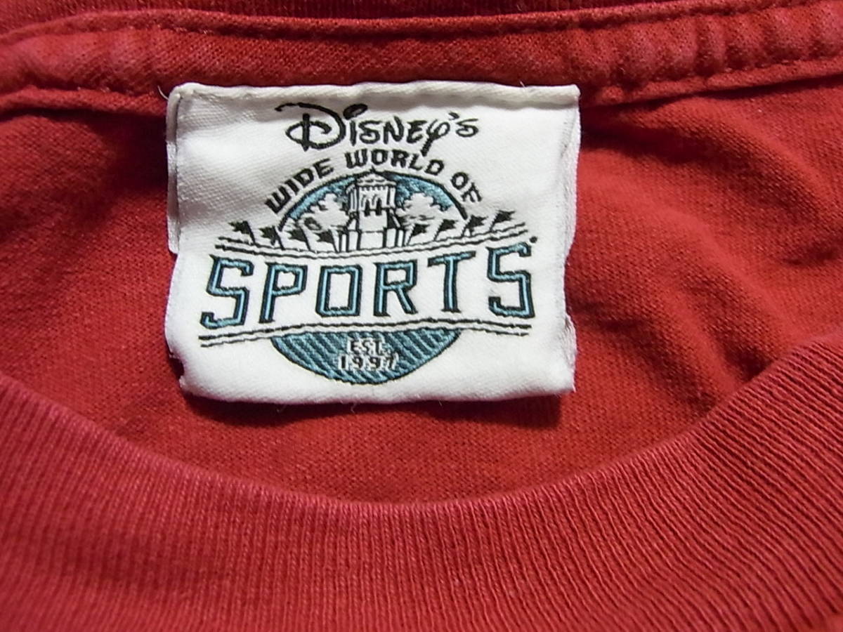即決!USA古着●ディズニーDisney SPORTS★デザインロンT赤XL●ヴィンテージ!アメリカで買ってきましたユーズドの鮮やかなディズニーロゴデザインロンTです。3枚目写真がバックになります。カラーはレッド、表記サイズXLで着丈約72cm、身幅(後ろ)約58cmです。素人採寸ですので多少の誤差はご了承お願い致します。状態はある程度の着用感あり、フロントとバックのプリント部分にひび割れあります。あくまで古着として考えてください。古着の性質をご理解頂ける方のみ入札お願い致します。クリックポスト、レターパックまたは、ゆうパックでの発送になります。他にもいろいろ出品しています。よろしくお願いします。