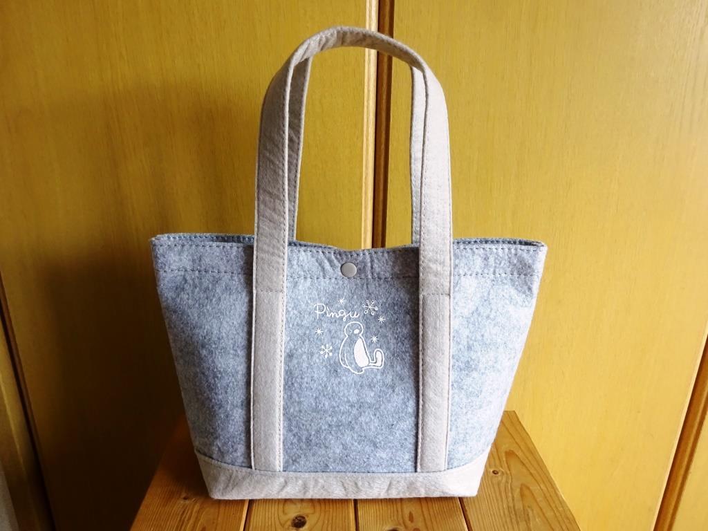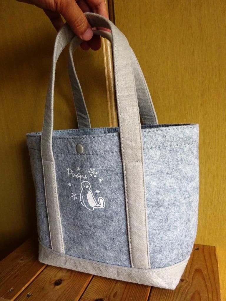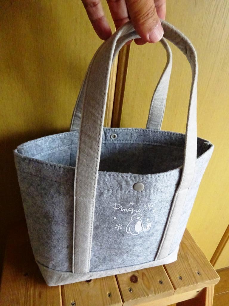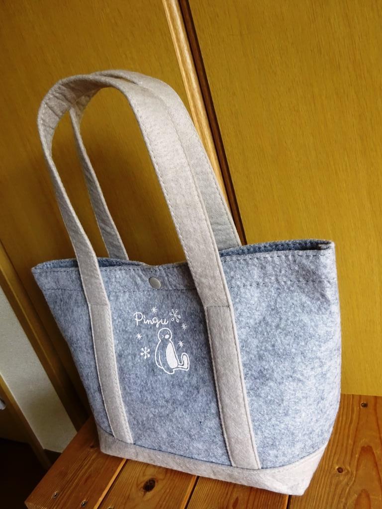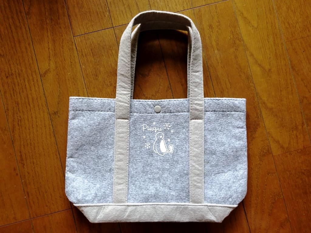 限1&即OK! 秋冬2色グレー、優しい起毛フエルト製&口元ホック付◆ ピングーPINGU トートバッグ&ランチバッグ  ポーチショルダーエコバッグ