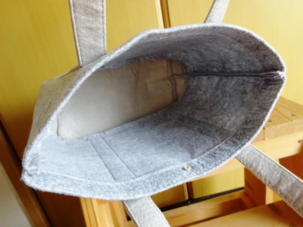 ▼数量;1点、▼サイズ;幅31×高さ22×マチ10センチ(*バック部分)、持ち手35センチ、▼素材;フエルト生地ほか