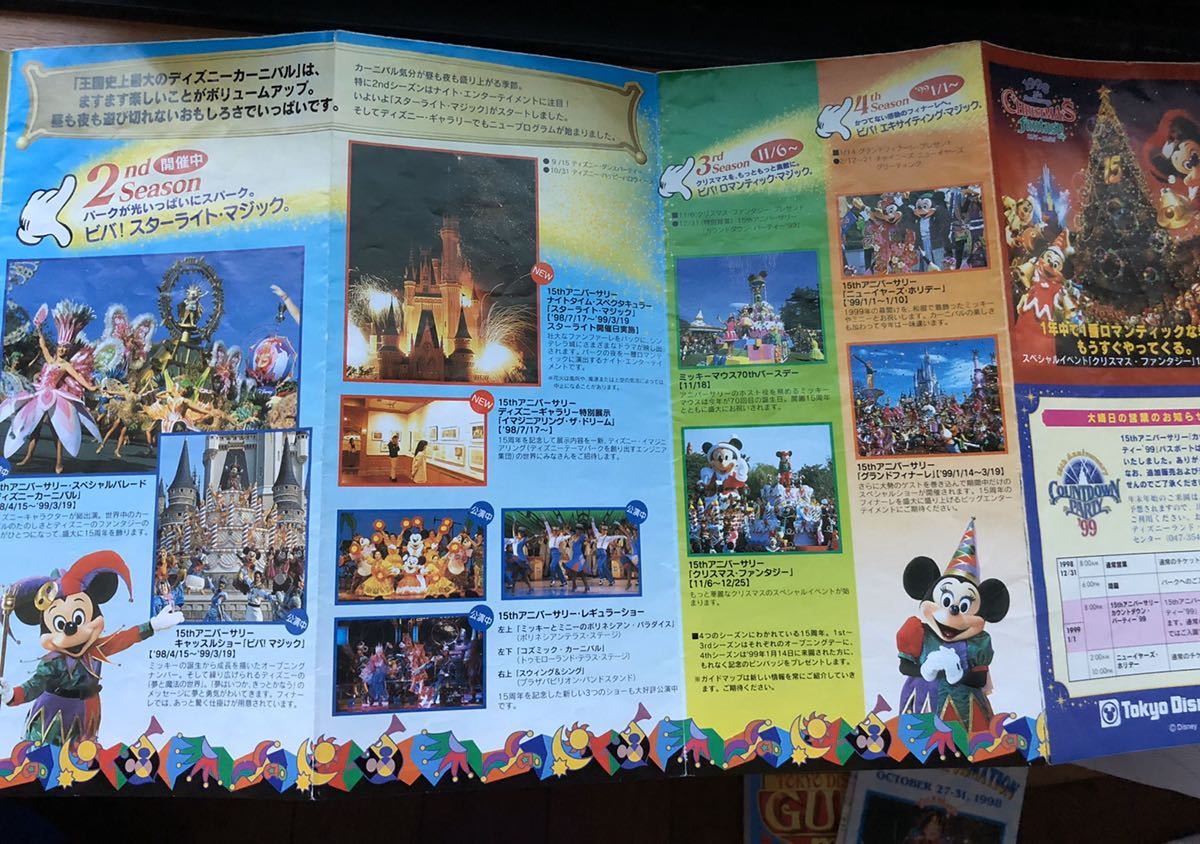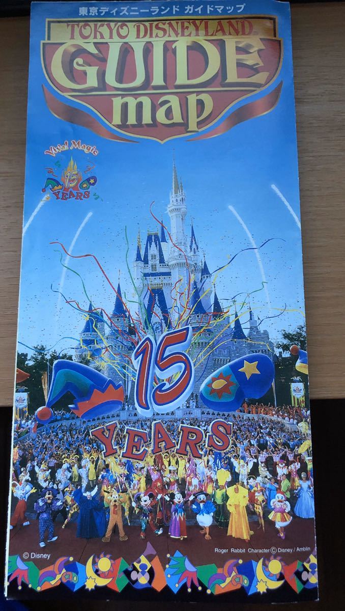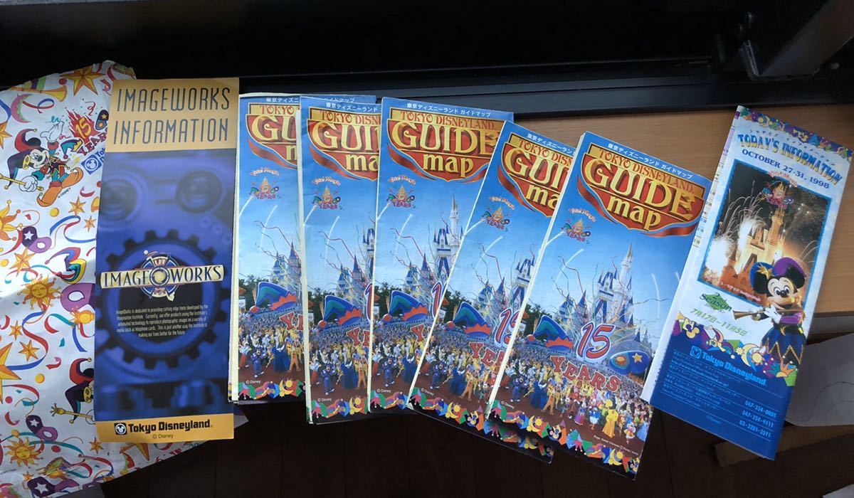 東京ディズニーランド15周年、ハロウィン時の園内マップ5枚、イメージワークスの申込書1枚、ギフト用紙袋1枚のセットです。折れ等あります。
