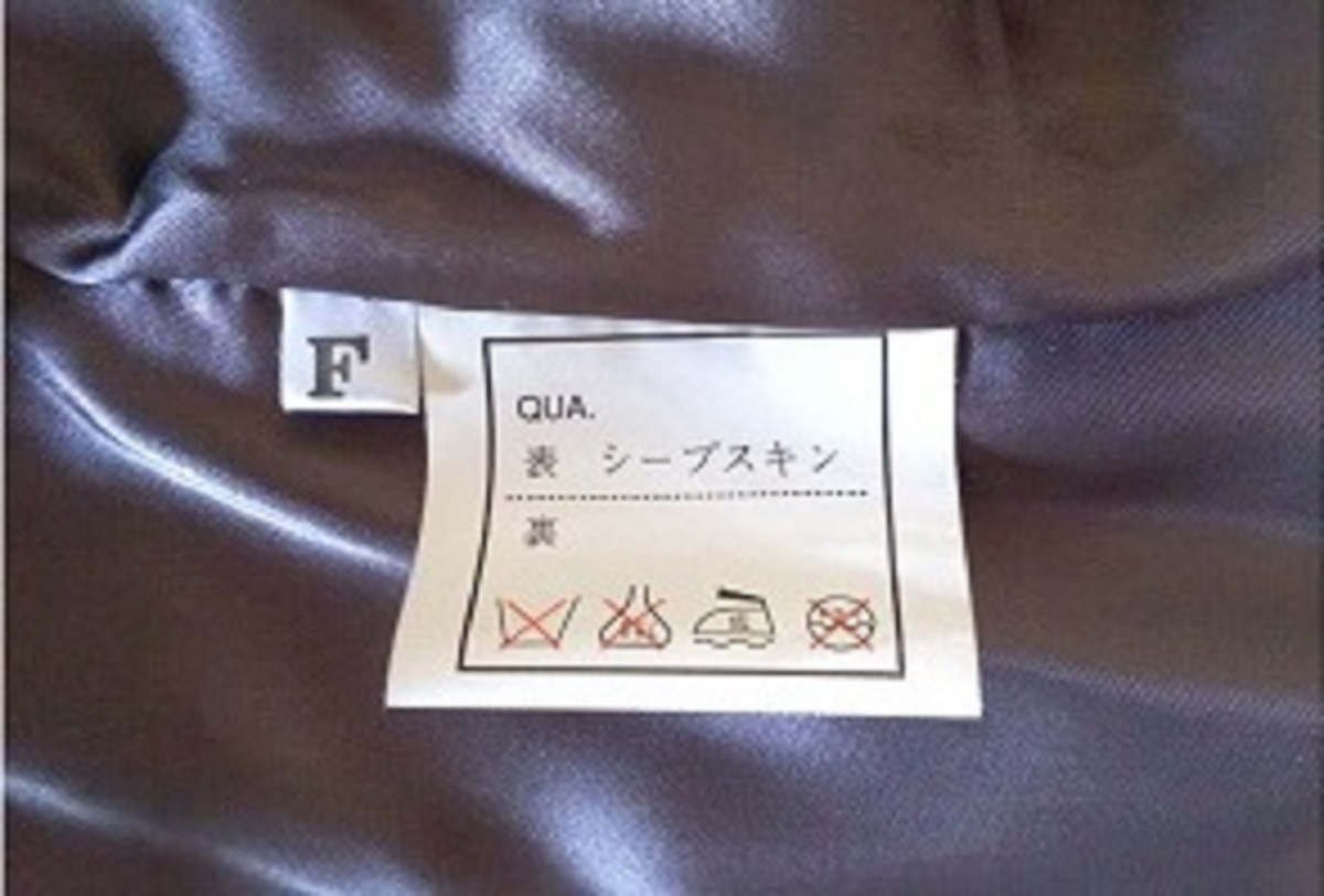 ラベルに表シープスキン(皮革取扱いご注意)とあるチェスターコートです。メーカー・ブランド・生産国不明、表記サイズF、平置きの実測で身幅60、裄丈85、着丈90cm程度あり3L相当と思われます。