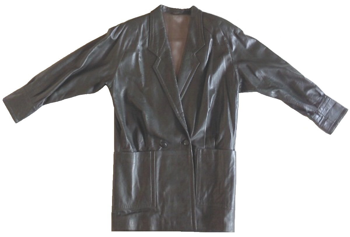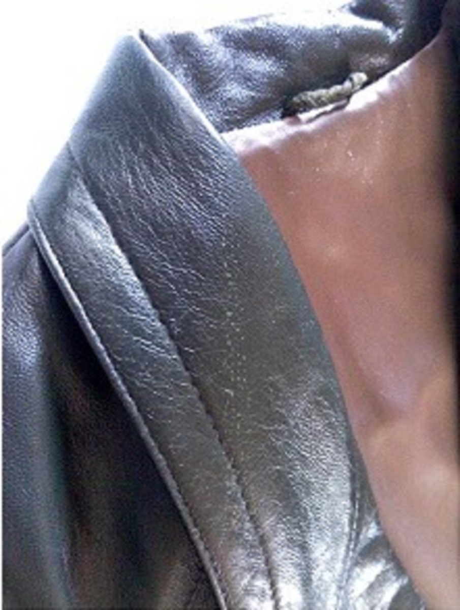 いつ頃購入したものか不明です。未使用ですが襟の右側に点状の傷かシミ、左袖の裏側に茶色いシミが見られます。