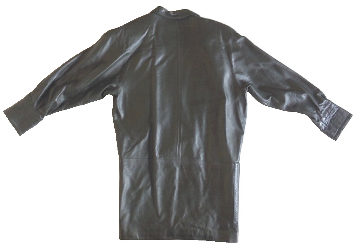 画像では黒のように見えますが黒に近い濃緑です。ラグランスリーブのダブル2つボタンで、表の左右と内側左に開放ポケットがある他、ソフトタイプの肩パッドが入っています。