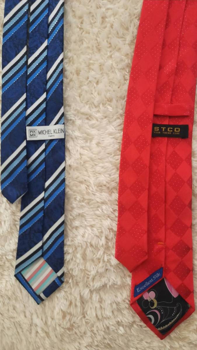 使用感がある二つのネクタイです。目立つ汚れなどはありません。写真の通りです。