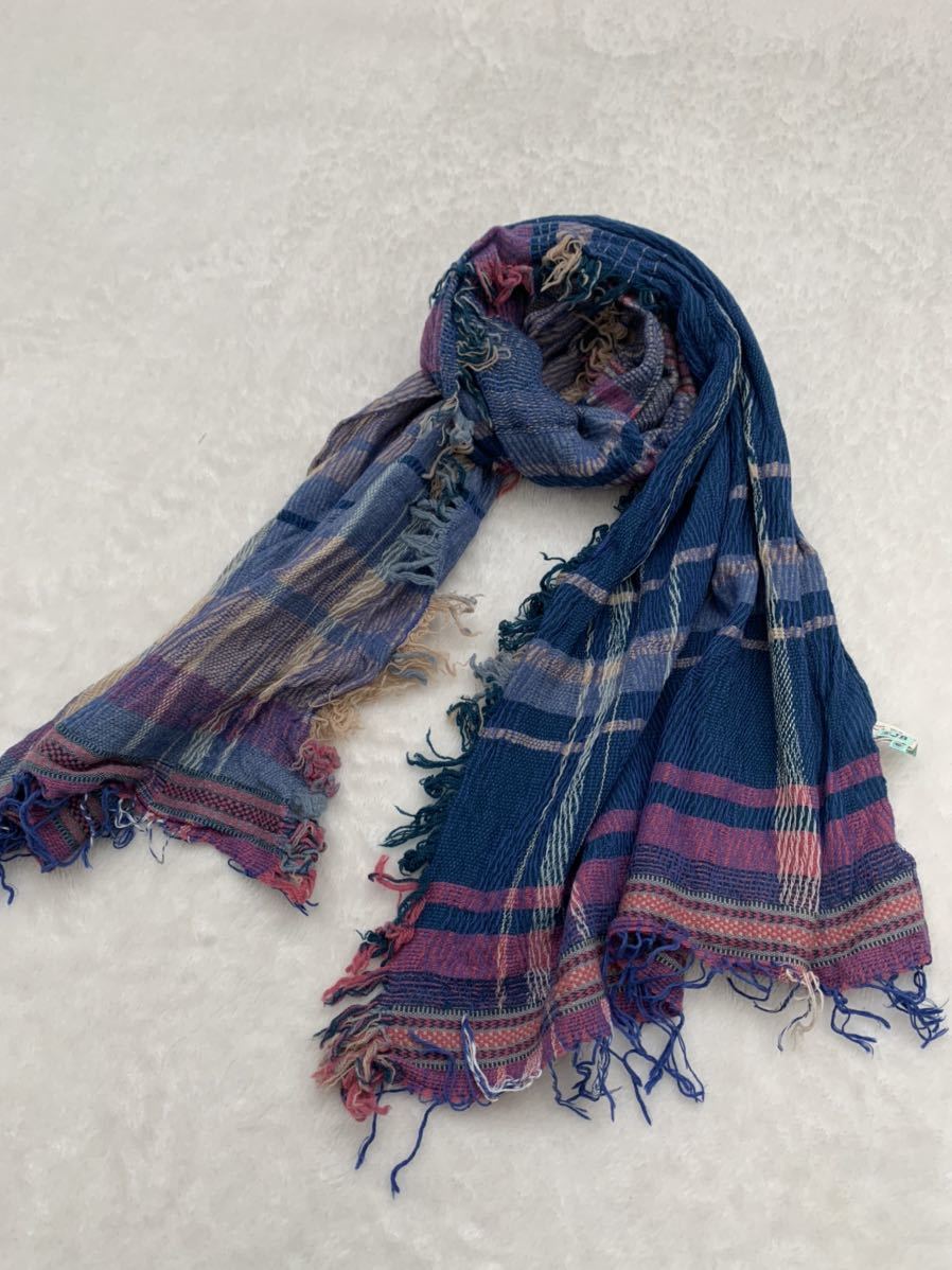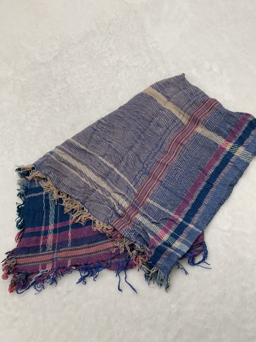 tamaki nime 織り柄ストール コットン ウール タマキニメ ピンク ブルー (KI)
