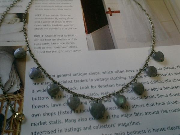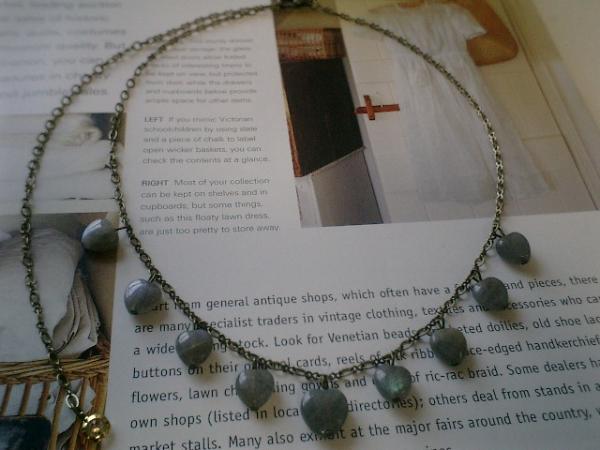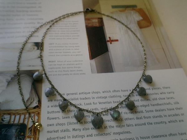 時々少女(??)になりたくて第2弾です♪神秘的なお色のラブラドライのネックレスを作りました♪ラブラドライトは8ミリと10ミリのハートです♪繊細で可憐な雰囲気です♪落ち着いたシックなお色なので合わせやすいと思います♪シンプルで飽きのこないいつまでも着けられるデザインを考えて作りました!長さは全長55センチで調節自由です♪チョーカー風に着けられても可愛いです♪お揃いのブレスレットも出品しています。ハンドメイドをご理解頂いてノークレーム、ノーリターンでお願いします