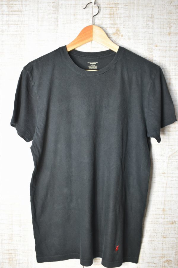 ●US USED POLO Ralph Lauren ラルフローレン Tシャツ ポニーロゴ刺繍 ブラック黒【S】