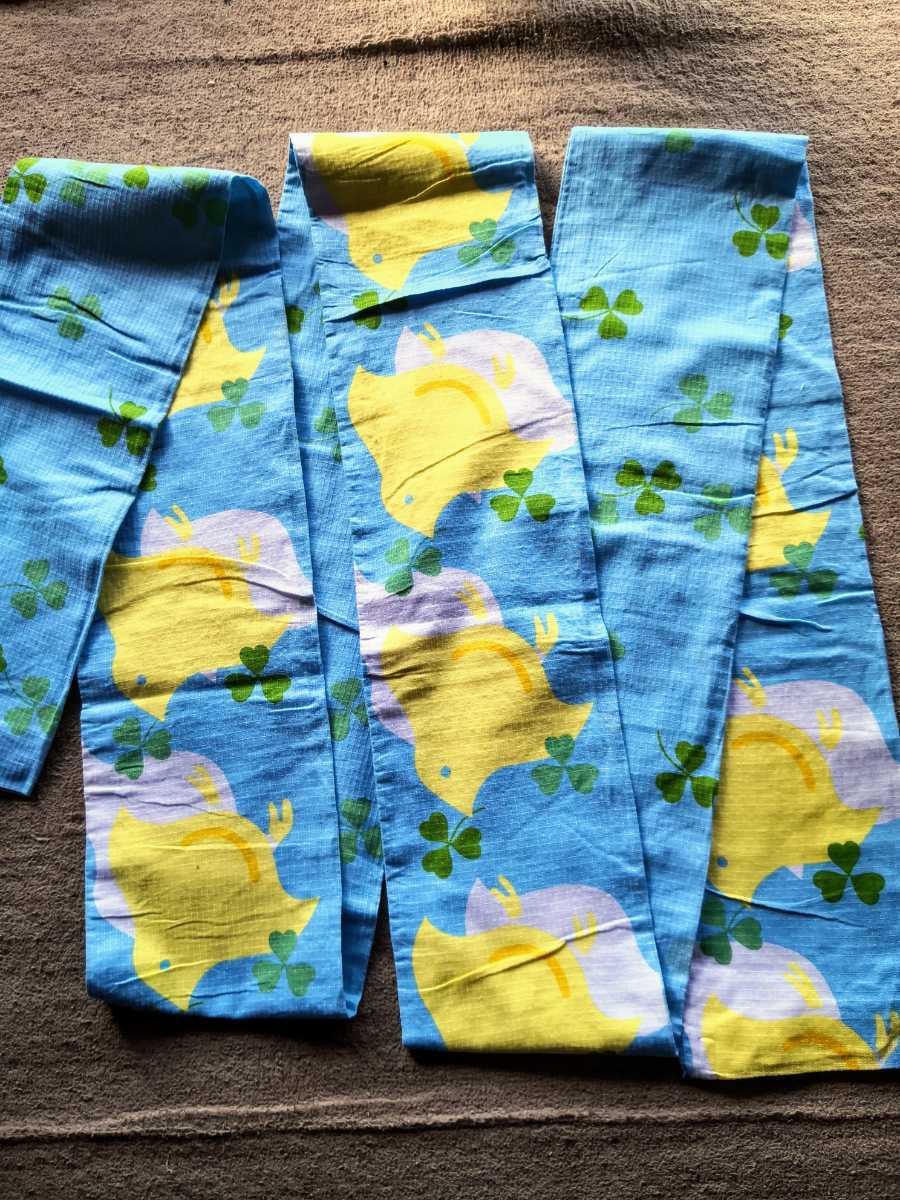 商品名 : 女児用 リバーシブル浴衣帯 ひよこ&クローバー ブルー