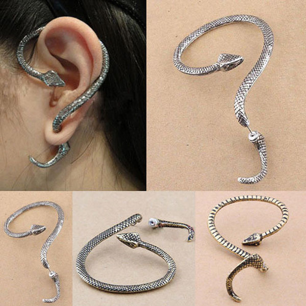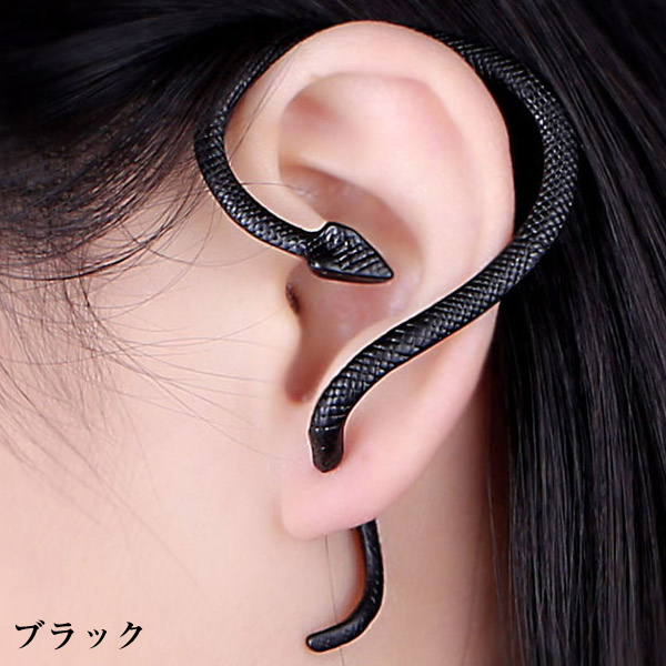 蛇が耳に絡みつ不気味だけどかっこいいスネークイヤーラップピアス。