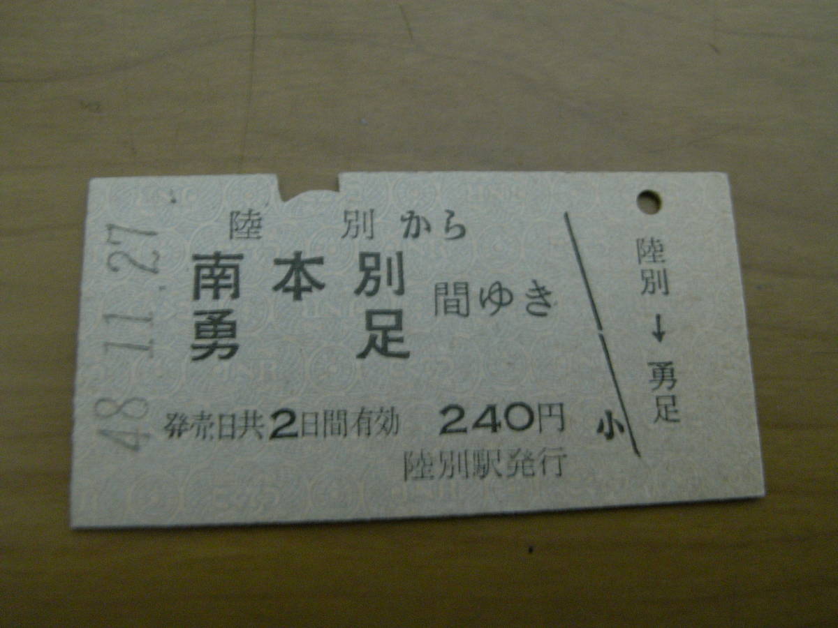池北線 陸別から南本別 勇足間ゆき 240円 昭和48年11月27日 陸別駅発行
