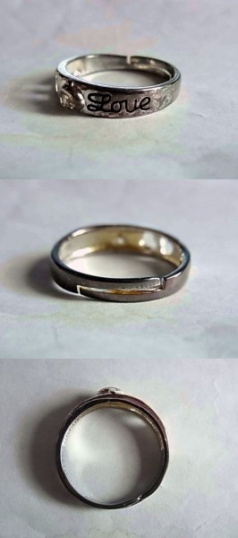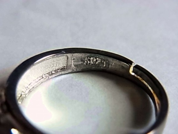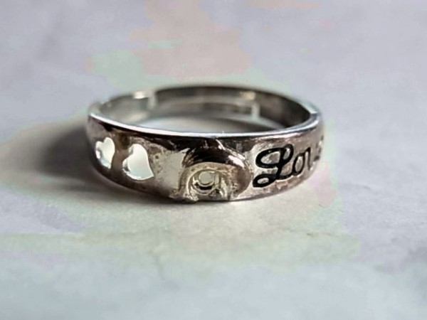未使用品です。ノーブランドのリング(指輪)です。サイズは約13.5号です。素材はシルバー925でリング内側の刻印はS925です。アルファベットの筆記体でLOVEの刻印とハートの形でのくり抜きがされています。LOVEの横の模様は立体的なイルカです。現在のリングサイズより大きいサイズへのサイズ調節がご自身でできるフリーサイズのリングです。実物は写真より硫化が進んでかなり変色しています。以前新品で購入し保管していただけの商品です。最初から小キズやくすみや変色等はあります。付属品はありません。落札後の質問には一切回答しませんので、必ず落札前に不明な点は質問し不明な点を解消してから入札及び落札して下さい。