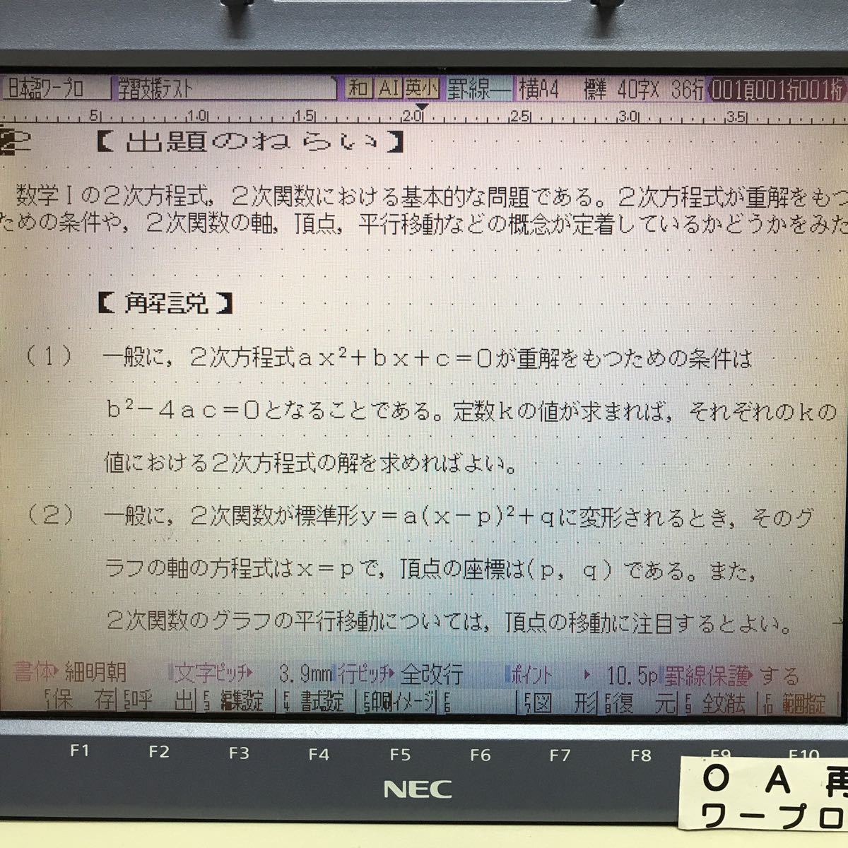 NEC ワープロ JX-720 整備済み 3ヶ月間保証あります