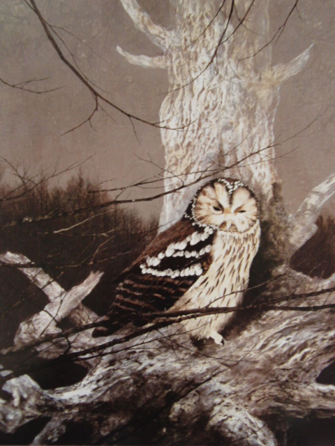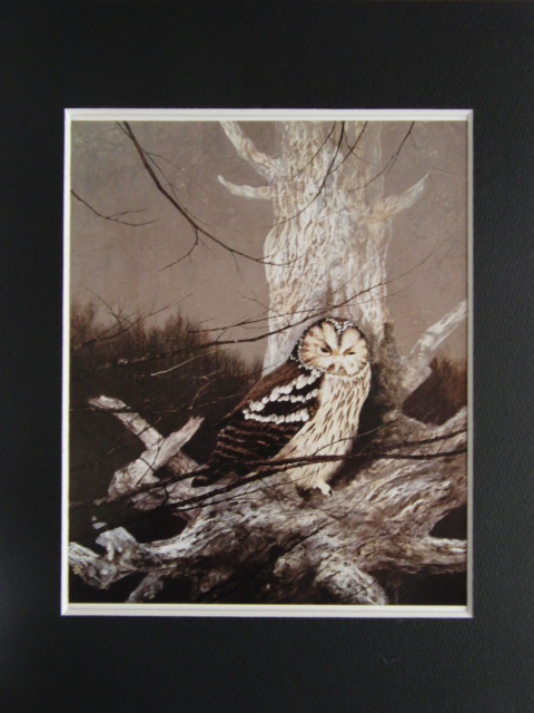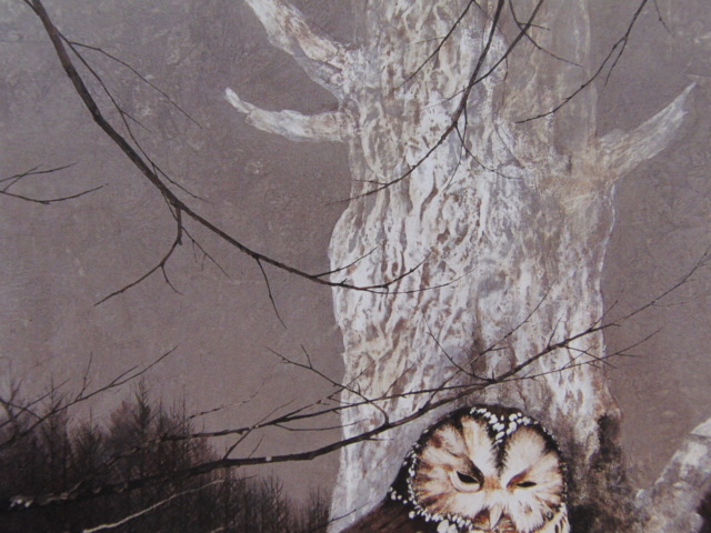 石田武、【梟】、希少な額装用画集より、新品額装付、状態良好、送料込み