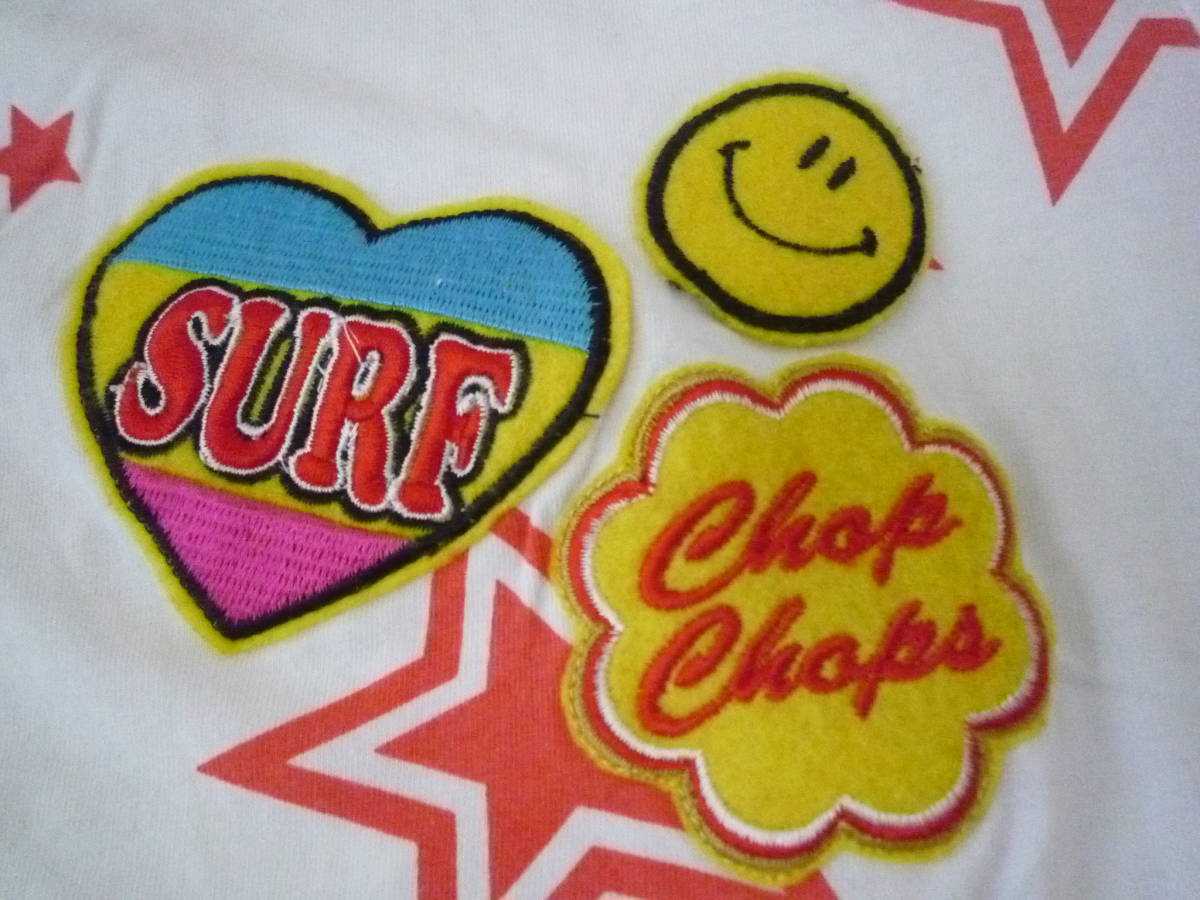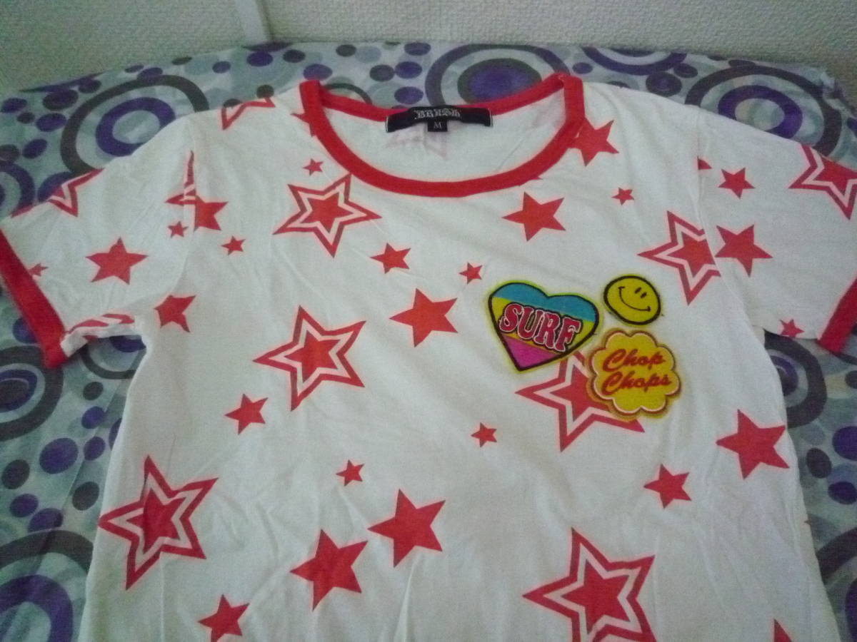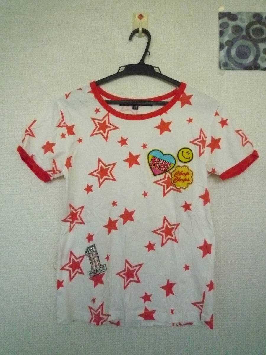★ お星さま柄 ワッペン付 半袖Tシャツ < M > ニコちゃん・ハート・82