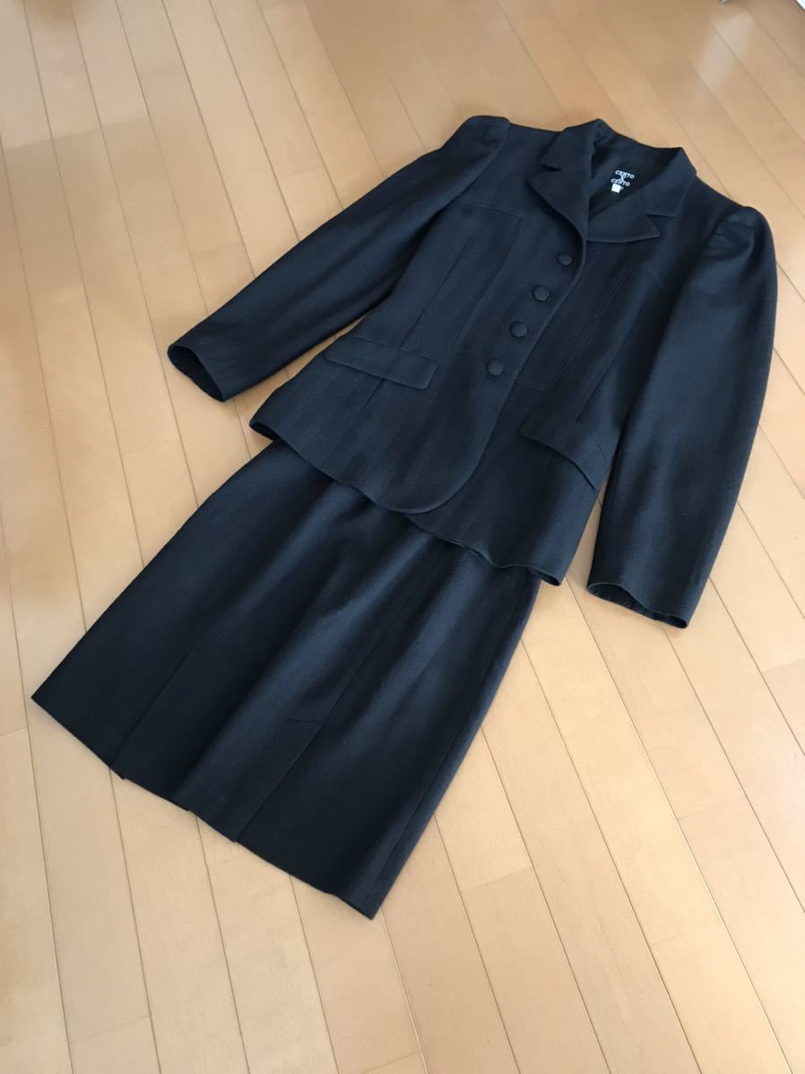 ★パワーショルダーのお洒落なスカートスーツです。スカートに、スリットが二ヶ所入っていたりと、さすがヨーロッパブランドのデザイン性の高さが感じられる品です。