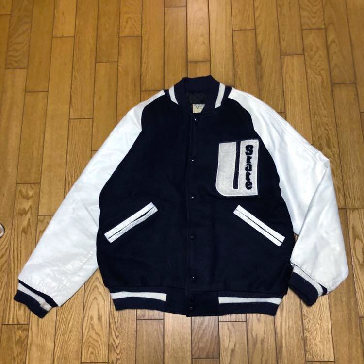 MAVERICK マーベリック 袖革スタジャン ジャケット M ネイビー