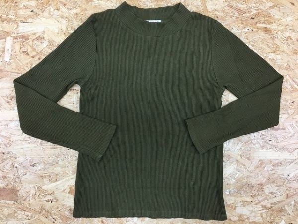 | 商品タイトル | BEAMS HEART ビームスハート サイズ不明 レディース カットソー モックネック 襟ぐり広め リブストライプ 無地 長袖 オリーブ |