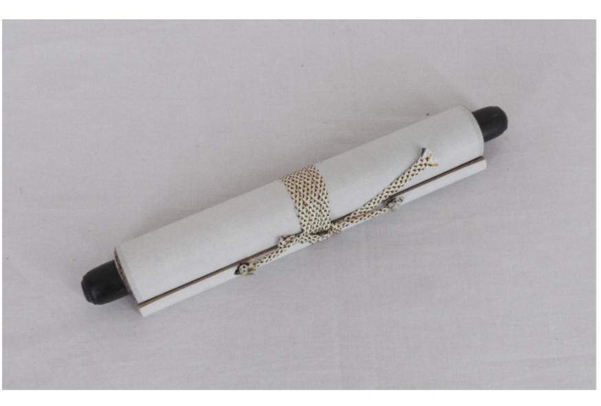 古い掛け軸は軸先を固定している接着剤が弱り、輸送途中の衝撃で軸先が外れてしまう場合がございます。