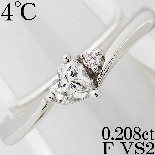 | 4℃☆ハート ダイヤ 0.208ct F VS2 ピンクダイヤ Pt950 プラチナ リング 指輪 婚約 0.2ct 一粒 綺麗 上品 8号♪鑑定書付・送料込 | ||