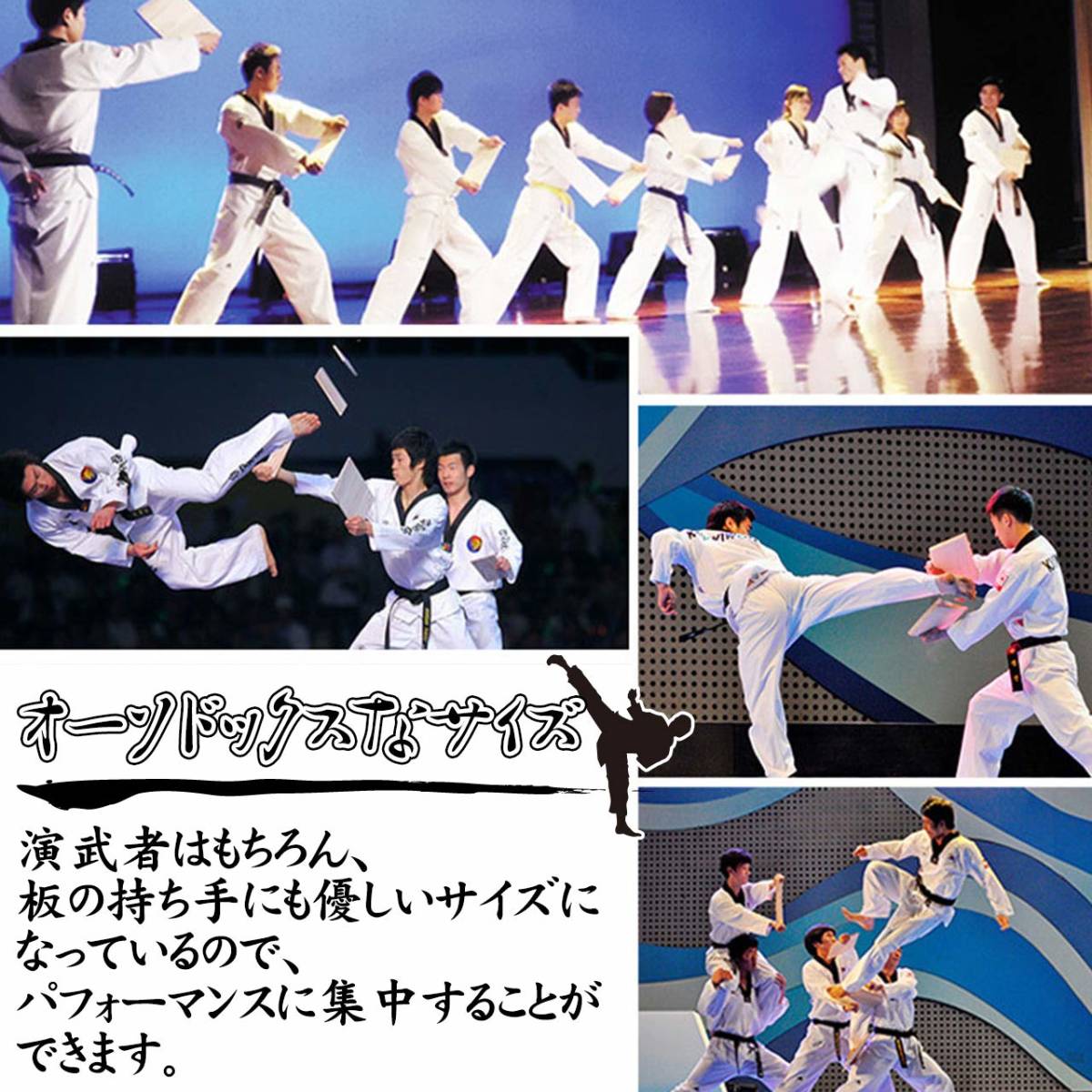 演武者はもちろん、板の持ち手にも優しいサイズになっているので、パフォーマンスに集中することができます。板割りのデモンストレーションで一般的に使われているサイズです。