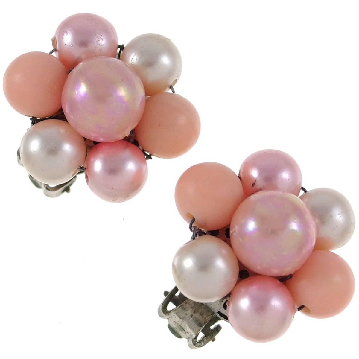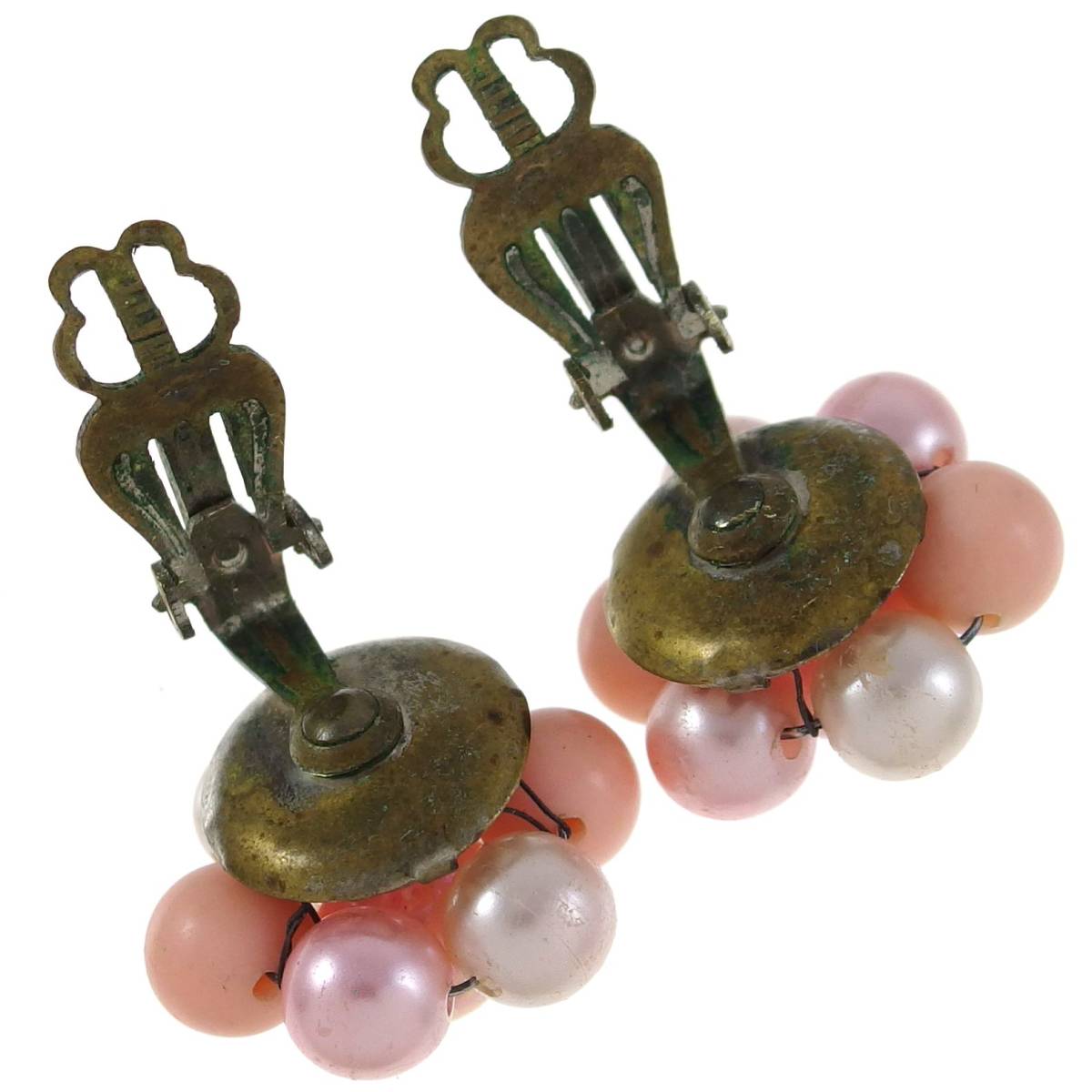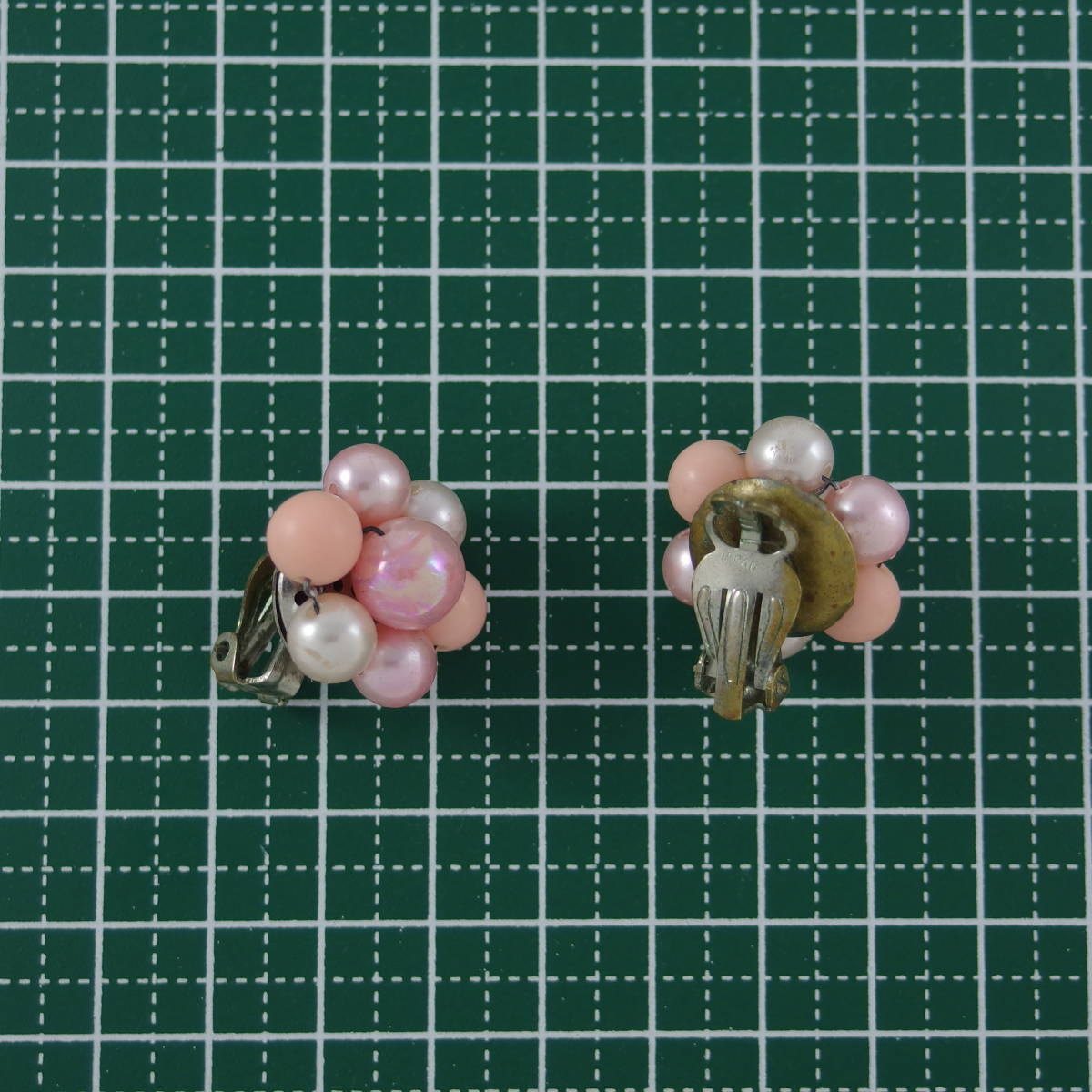A1507◆【JAPAN】 ◆ ヴィンテージイヤリング ◆ ピンク系ビーズのクラスター ◆