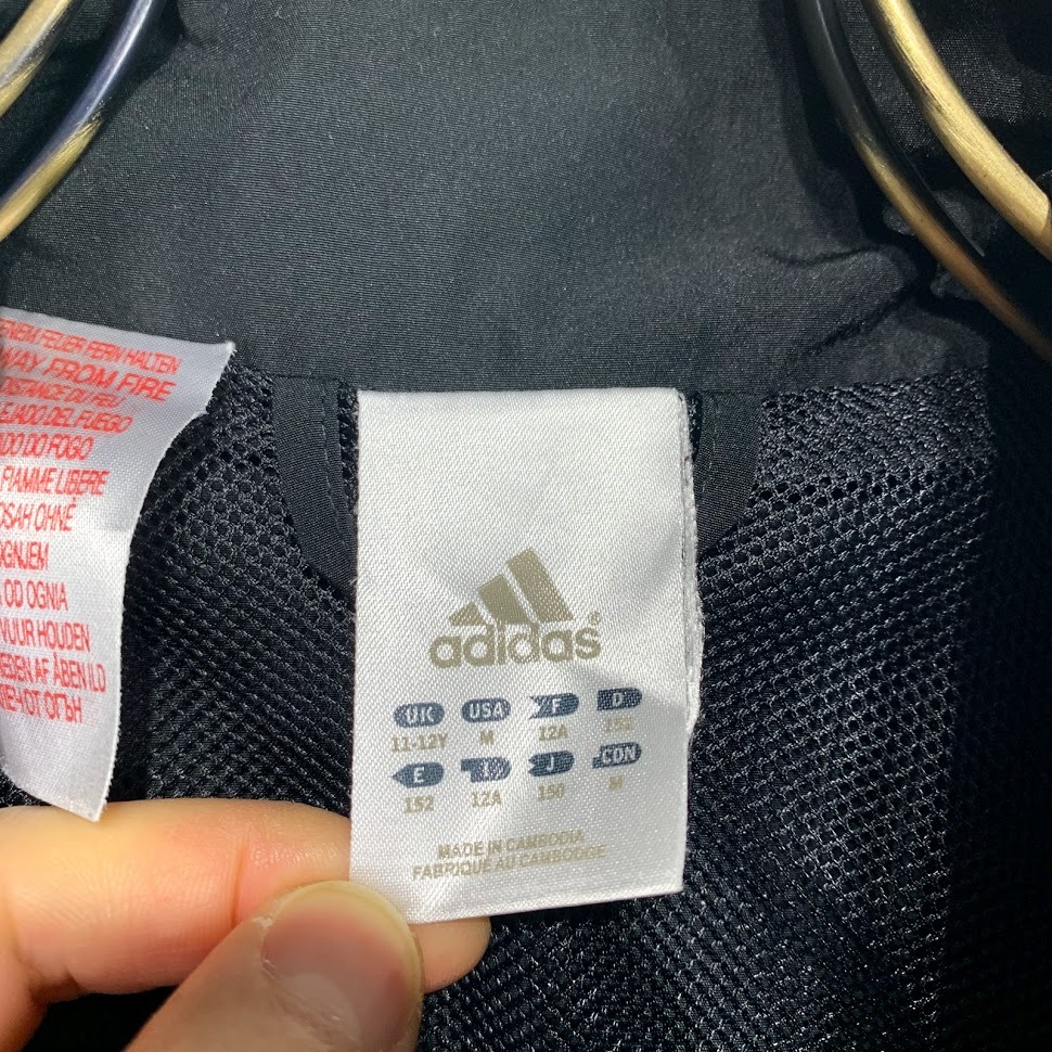 adidas ナイロン ジャケット 150サイズ アディダス トレフォイル 3本ライン ブラック 黒 キッズ こども 子供