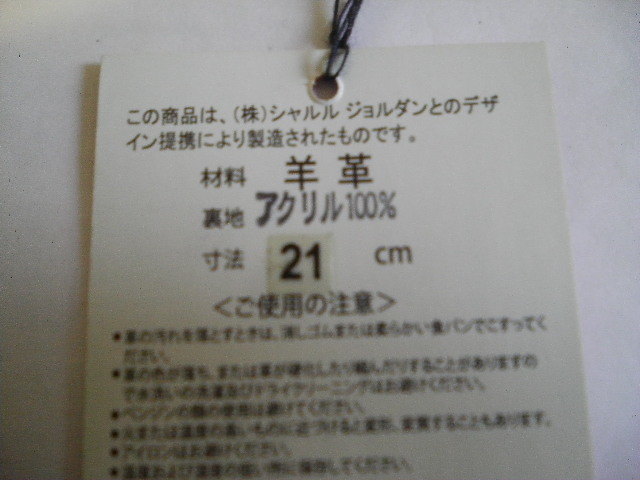 【SALEセール】☆新品☆ロゴマーク入りです!!(モニター環境により色が写真と少し異なる場合があります) ☆素材 羊革 ☆裏地 ニット アクリル ☆表記サイズ 21cm ☆カラー 濃いめのブラウン系 ☆平置きサイズ *手首~中指の先 約 22、5cm *手首の幅 約 9、3cm *中指の長さ 約 8、2cm ※参考程度に (測る場所により多少の誤差が生じます) ☆ブランド CHARLES JOURDAN シャルルジョルダン (正規ライセンス商品) |