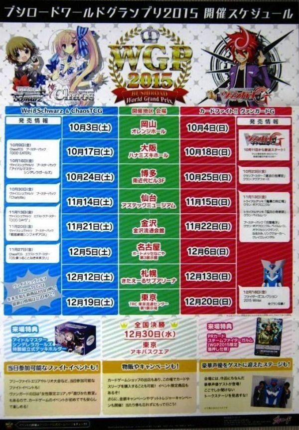 非売品 ブシロードワールドグランプリ2015開催スケジュール 告知ポスター 販促品 サイズ B2 (51.5 cm × 72.8 cm)  #833