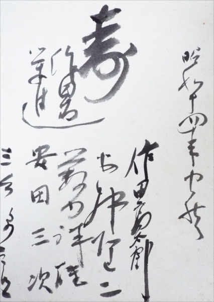 4924☆☆真作・肉筆色紙・作田高太郎・祝いの寄書名士署名・政治家・昭和14年・福山☆