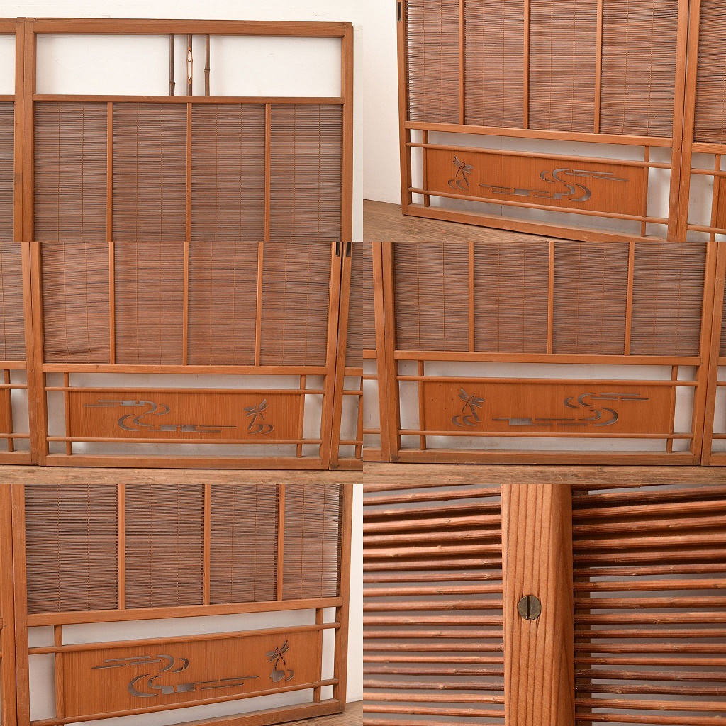 和製アンティーク トンボの透かし彫りが情緒あふれる御簾戸4枚セット(簾戸、簀戸、葭戸、夏障子、夏戸)(R-048137)