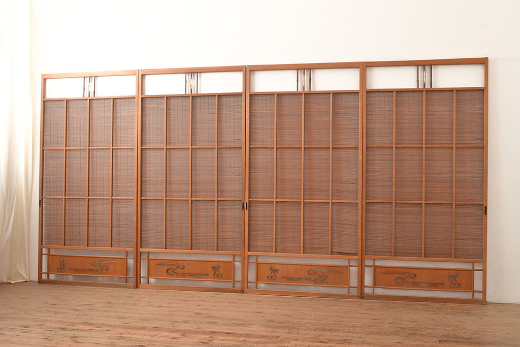 R-048137 和製アンティーク トンボの透かし彫りが情緒あふれる御簾戸4枚セット(簾戸、簀戸、葭戸、夏障子、夏戸)(R-048137)