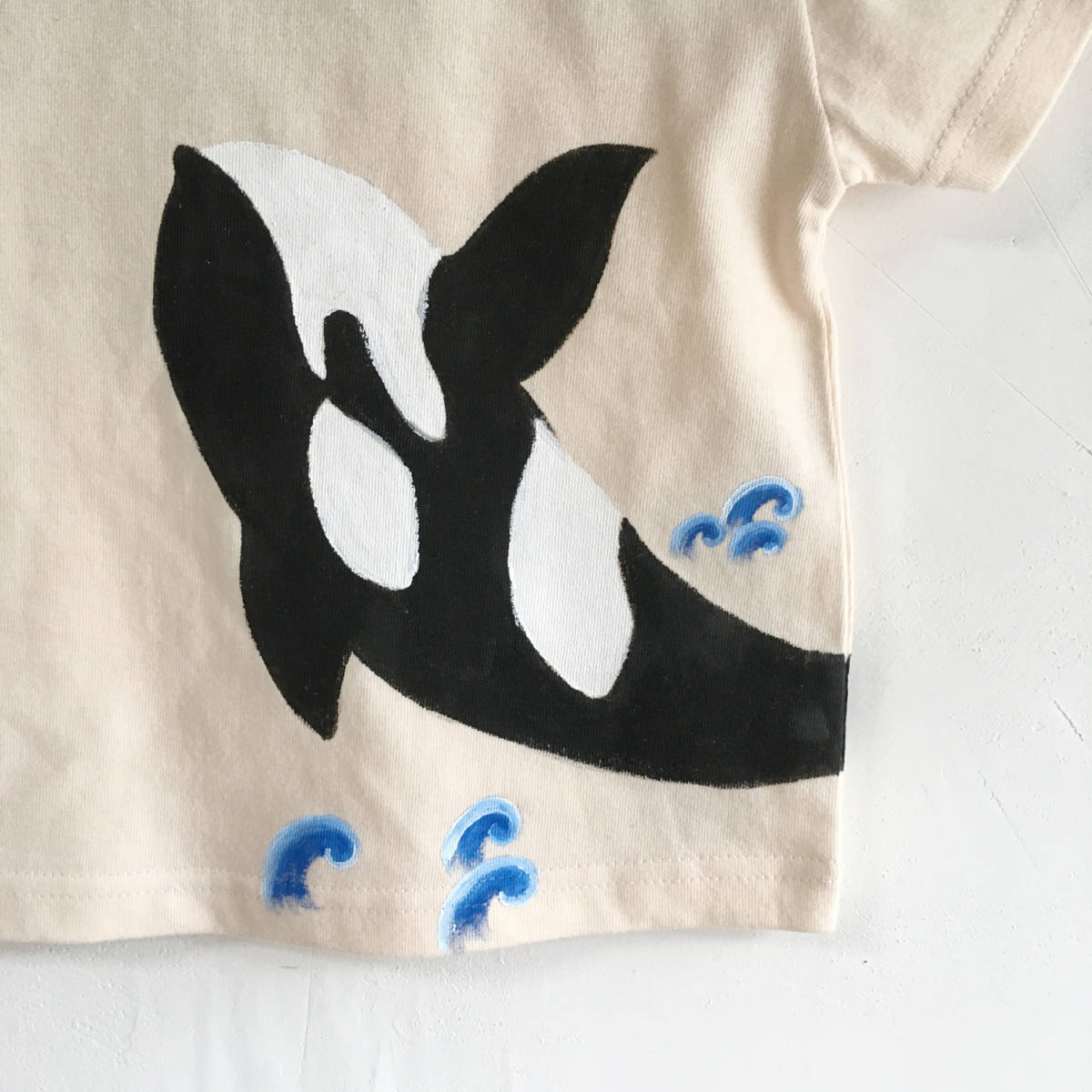 ハンドメイド 手描きTシャツ キッズ Tシャツ シャチ柄Tシャツ 手描きで描いたシャチ柄Tシャツ | |||