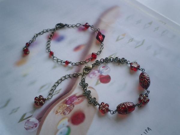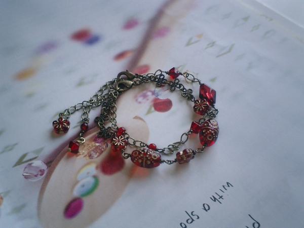 パリの子供たちシリーズです♪深い赤の模様のボヘミアンガラスビーズとお花のチェコビーズとベネチアビーズのブレスレット2本セットです♪お揃いで着けて頂きたいのでセットにしました。別々にも着けて頂けます。模様入りのガラスビーズはチェコのもので13×8でお花のチェコビーズは8ミリ位です。長さは全長22センチ位で調節自由です♪シンプルなデザインは深い赤のチェコビーズです♪長さは全長22センチで調節自由です♪シンプルで飽きのこないいつまでも着けられるデザインを考えて作りました!お揃いのネックレスも出品予定です♪ハンドメイドをご理解頂いてノークレーム、ノーリターンでお願いします