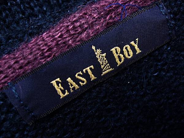 EAST BOY モヘヤニットパーカーです。ネイビー地にパープルライン。◆アクリル40% モヘヤ30% ナイロン30%◆サイズは11で着丈約55cm・肩幅約34cm・袖丈約64.5cm・身幅約52.5cmです。◆USEDですが状態は良好です。元はファー付きだったようです。◆