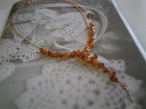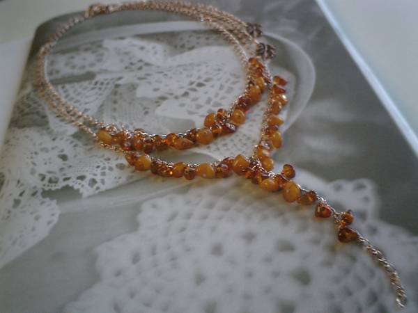 物語を紡いで・・シリーズです♪シックな琥珀とピンクゴールドのチェーンのロマンチックなネックレス2本セットです♪5ミリから9ミリ位のタンブルの琥珀のデザイン違いネックレスです♪お揃いで着けたりブレスレットにしたり単品でといろいろな組み合わせで楽しんで頂けます♪透明感のある琥珀とマットな色の琥珀を合わせて深みのある表情になりました♪シンプルなデザインは全長54センチ位で調節自由です♪ブレスにしてもチョーカー風にしても素敵です♪ラリエット風のデザインは全長63センチ位で調節自由です♪トップは8センチ位です♪それぞれピンクゴールドのチェーンが大人のロマンチックしています♪♪シンプルで飽きのこないいつまでも着けられるデザインを考えて作りました!それぞれ単品や同じテーマの作品も出品しています♪ハンドメイドをご理解頂いてノークレーム、ノーリターンでお願いします