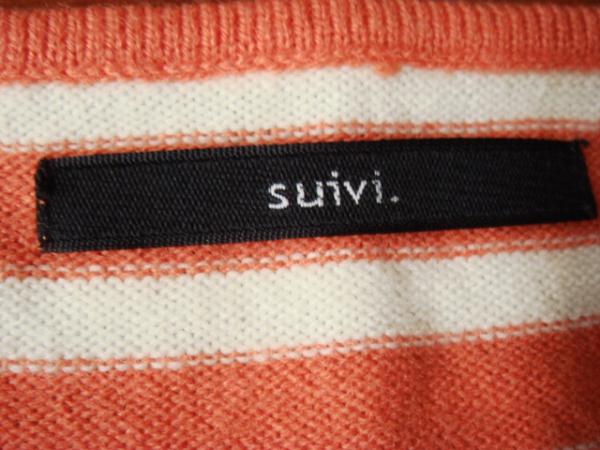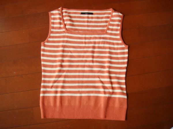 suiviの可愛いベストです。サイズは2です。お色はオレンジのストライプです。平置きサイズ、着丈55.5cm、脇下身幅42cm位です。素材はアクリル85%毛15%です。使用品ですので神経質な方は御遠慮下さいね。ノークレームノーリターンでお願い致します。その他いろいろ出品していますので見て下さいね。自己紹介も御覧下さいね。