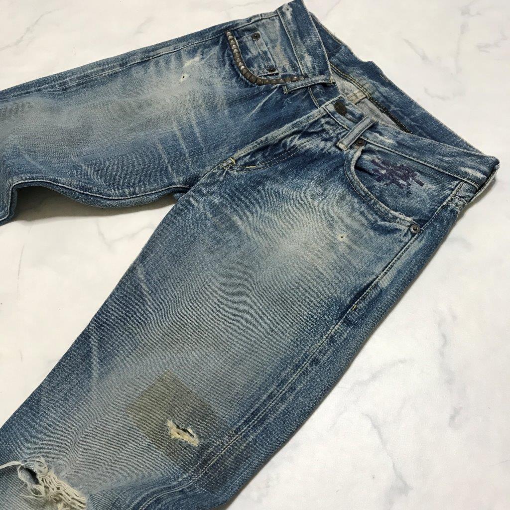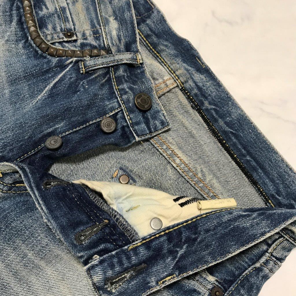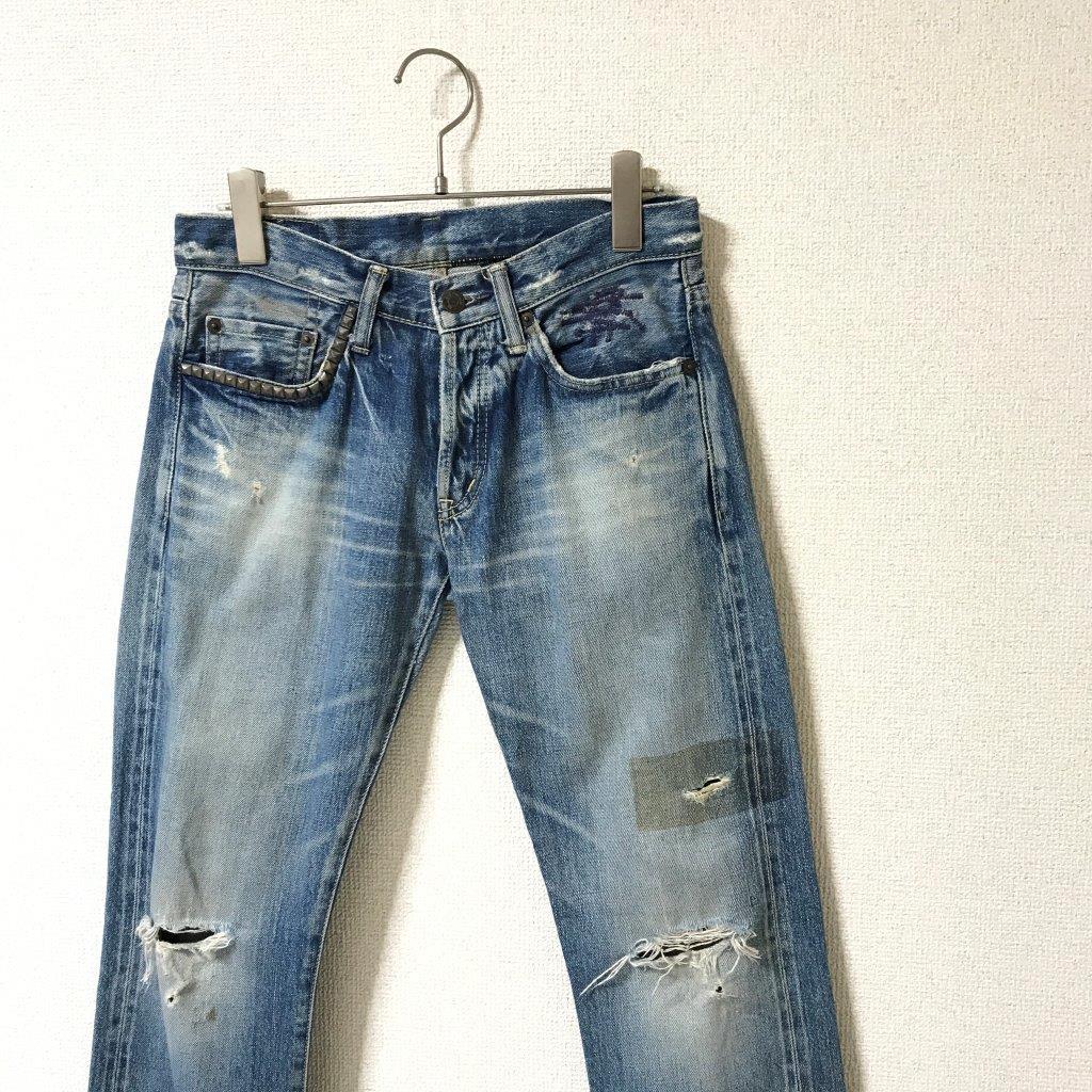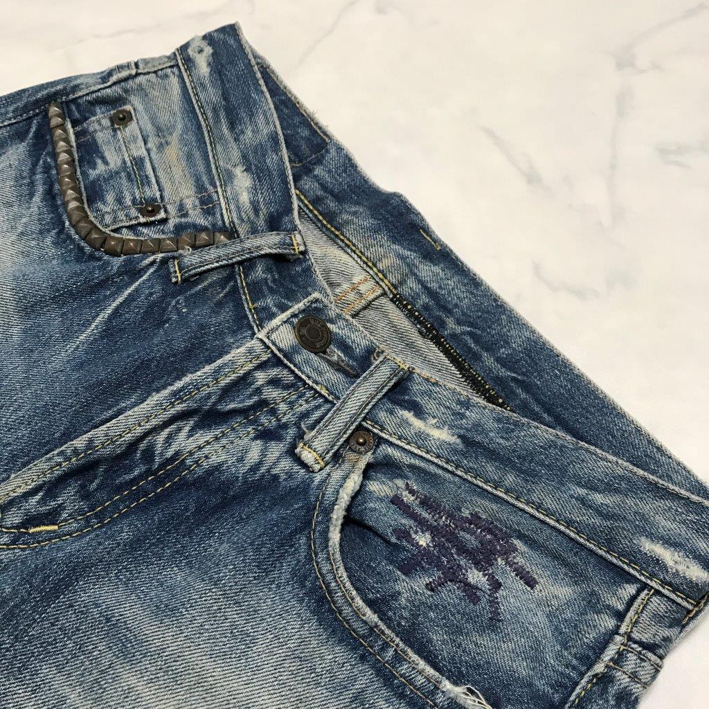 ★ヒステリックグラマー HYSTERIC GLAMOUR THEE HYSTERIC XXX★ボタンフライ ダメージ スタッズ デニム パンツ ジーンズ 28 管:B:02