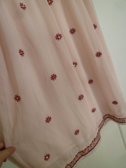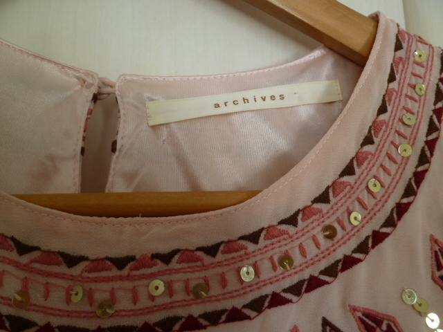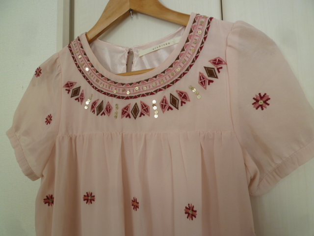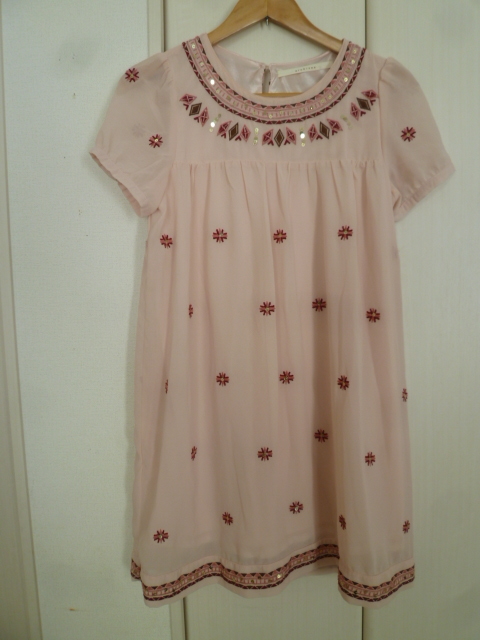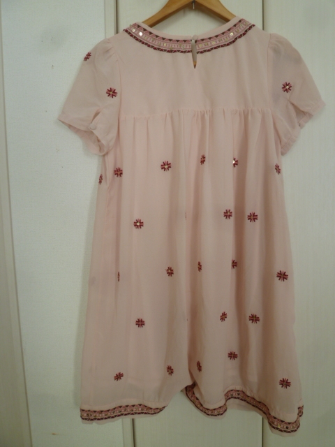 archives/アルシーヴ△淡ピンクお花刺繍スパンコールエスニックワンピースM/ライトピンク半袖膝丈ひざ丈△217