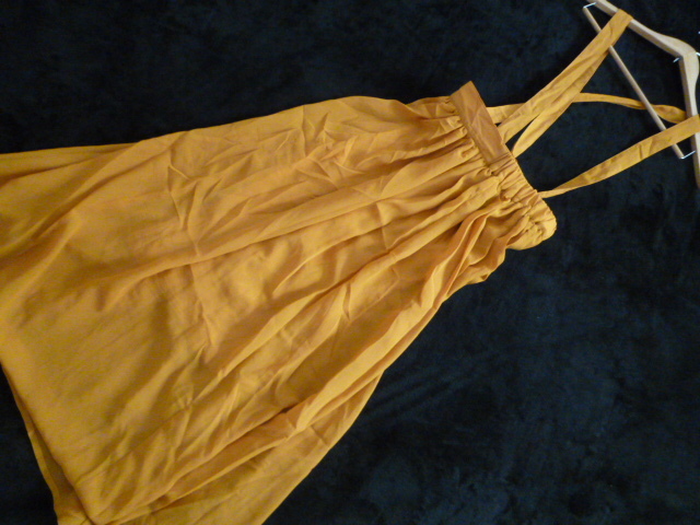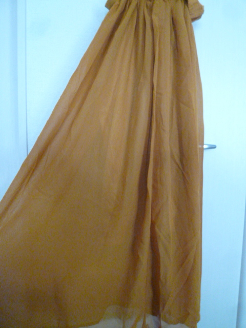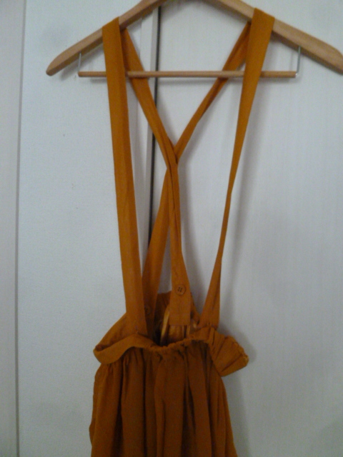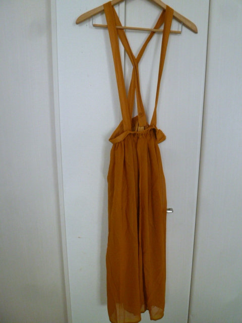 earth music&ecology/アースミュージック&エコロジー△やまぶき色系サスペンダー付きシフォンロングスカートF/マキシ丈山吹色△SK128②