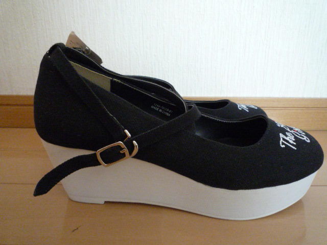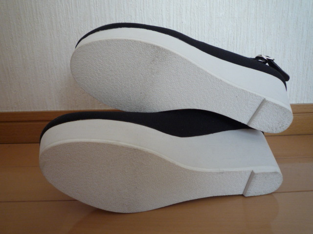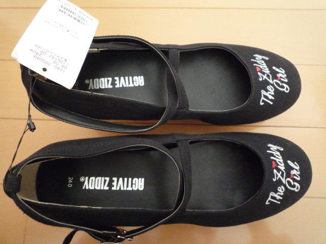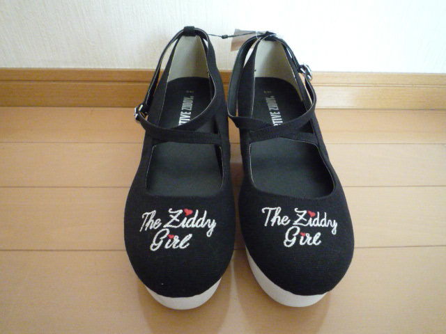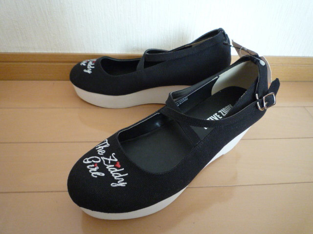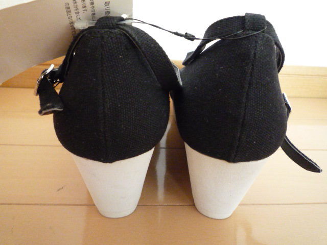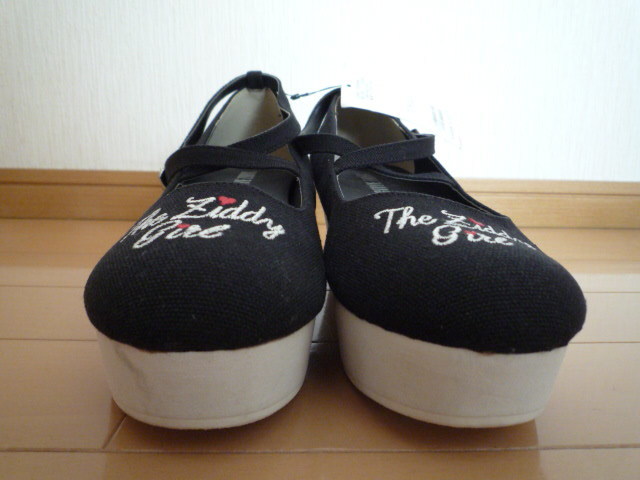 新品タグ付きZIDDYジディクロスストラップウェッジキャンバスパンプス黒ブラック24cmヒール女の子ガールジュニアキッズ卒業式