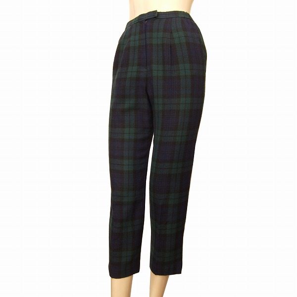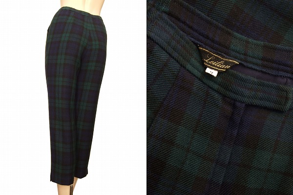 NM美品★レリアン*Leilian★ブラックウォッチ★チェック柄★裾スリット★暖かすっきりパンツ★7号(S)/レディース