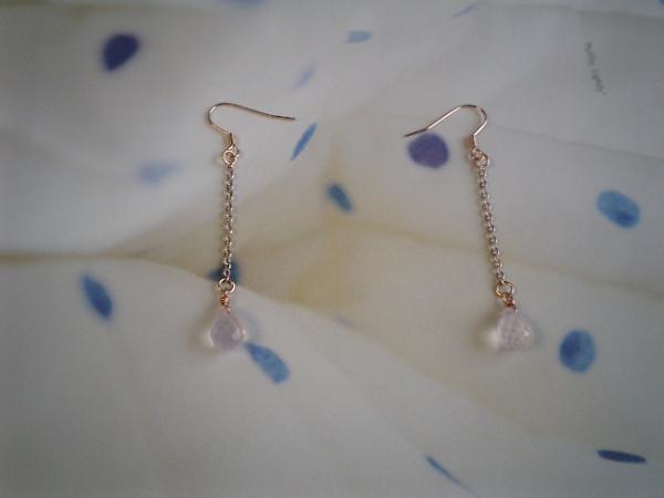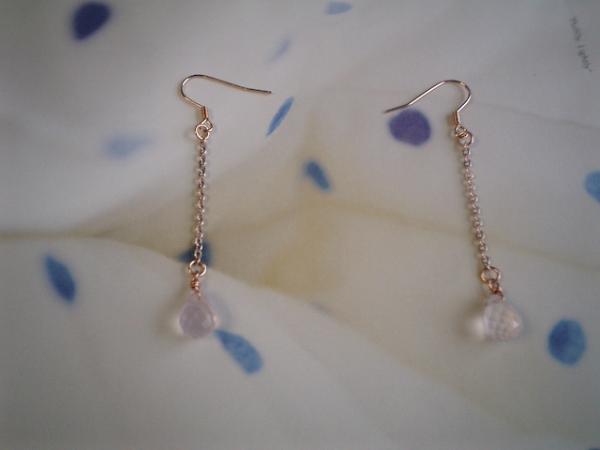パリジェンヌシリーズです♪やさしいローズクォーツとピンクゴールドのチェーンを大人っぽいシンプルなデザインでまとめました♪12×7ミリ位のドロップに繊細なチェーンを着けました♪長さは5センチ位です♪ローズクォーツの淡いピンクが可憐な雰囲気です♪シンプルでいつまでも着けられるデザインを考えて作りました!同じローズクォーツとピンクゴールドのピアスのデザイン違いも出品しています♪お揃いのネックレスも出品予定です。ハンドメイドをご理解頂いてノークレーム、ノーリターンでお願いします