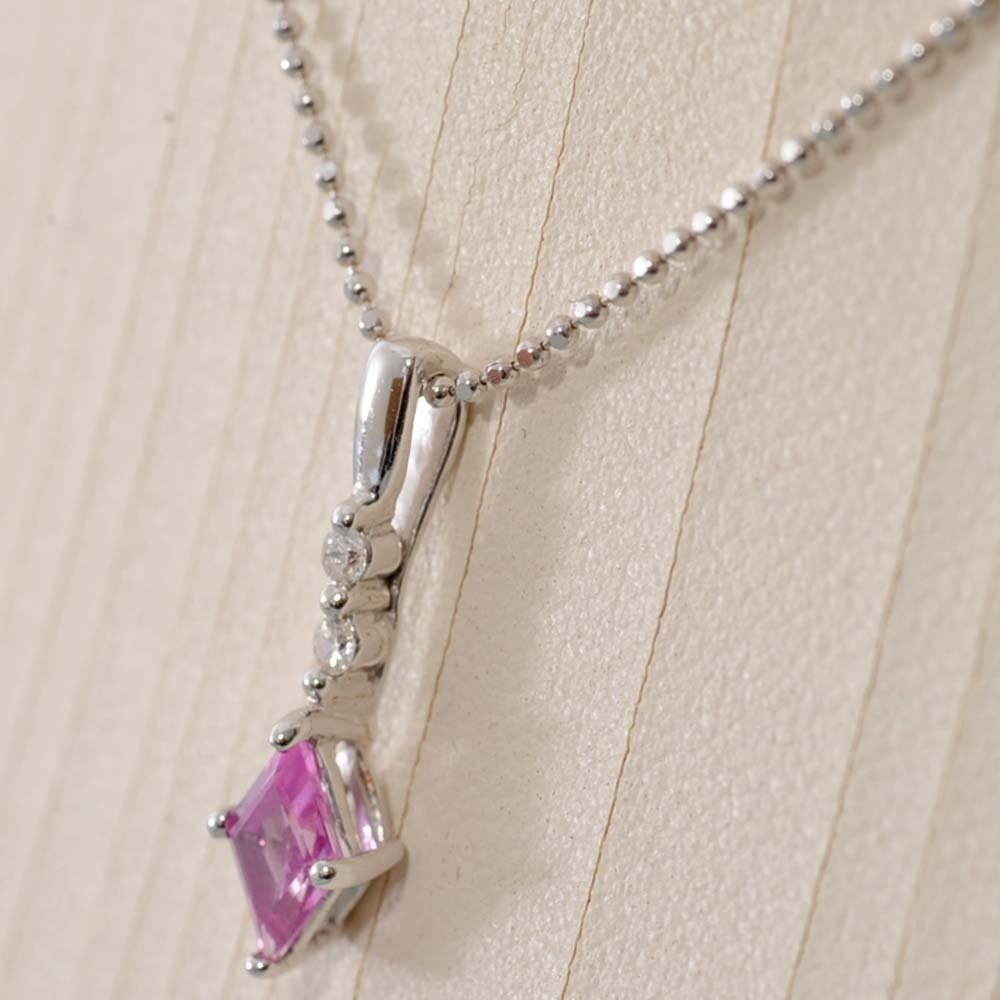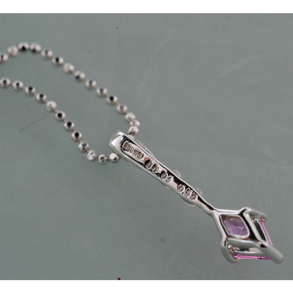 ● 【B95】 k18WG ホワイトゴールド 天然コランダム ピンクサファイア 0.50ct メレダイヤ 0.04ct ペンダントネックレス 中古品 ソーティングラベル付